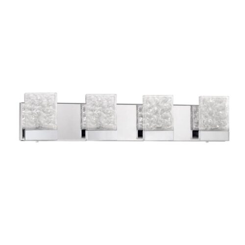 Elevate your bathroom’s aesthetic with the ASTRON 4-Light LED Chrome Vanity Light, designed to combine modern elegance and energy efficiency. Crafted with a stunning chrome finish, this vanity light features exquisite Frosted Fossilized Ice Glass shades that diffuse light beautifully, creating a warm and inviting atmosphere. The integrated LED bulbs not only provide superior brightness but are also dimmable, allowing you to customize the lighting to suit any mood or occasion. Made from durable materials including iron, steel, and aluminum, this fixture is built to last, ensuring that your investment serves you well for years to come.