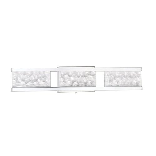 Elevate your bathroom decor with the CALLAVIO 3-Light Linear LED Bath & Vanity Light, a stunning blend of modern design and functional brilliance. Featuring a sleek chrome finish that adds a touch of sophistication, this vanity light showcases exquisite Frosted Icelandic Rock Glass shades that diffuse light beautifully, creating a warm and inviting ambiance. Designed with integrated LED bulbs, this energy-efficient fixture not only delivers exceptional brightness but is also fully dimmable, allowing you to set the perfect mood for any occasion. With its durable construction made from high-quality iron, steel, and aluminum, the CALLAVIO vanity light promises longevity and style, making it a perfect choice for contemporary bathrooms.