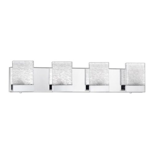 Enhance your bathroom’s ambiance with the ASTRON 4-Light LED Chrome Vanity Light, a stunning fusion of contemporary design and functional elegance. Crafted with a sleek chrome finish, this vanity light fixture complements any modern decor while providing optimal illumination. The unique frosted rippled ice glass shades diffuse light beautifully, creating a warm, inviting atmosphere perfect for morning routines or evening relaxation. This innovative lighting solution features integrated dimmable LED bulbs, allowing you to adjust the brightness according to your mood or task, while the sturdy construction of iron, steel, and aluminum ensures durability and longevity.