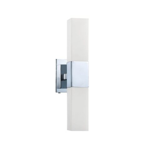Elevate your bathroom or vanity space with the Madison 2-Light Chrome Vanity Light, a stunning blend of modern design and functionality. This elegant fixture features a sleek chrome finish that complements a variety of décor styles, while its squared white glass shades emit a soft, inviting glow, perfect for creating a warm ambiance. With a width of 2.5 inches per glass shade and a 5-inch box cover plate, this vanity light effortlessly coordinates with your existing fixtures and adds an air of sophistication. The Madison 2-Light Vanity Light is designed to accommodate medium base bulbs, allowing you to choose the perfect illumination level for your needs.