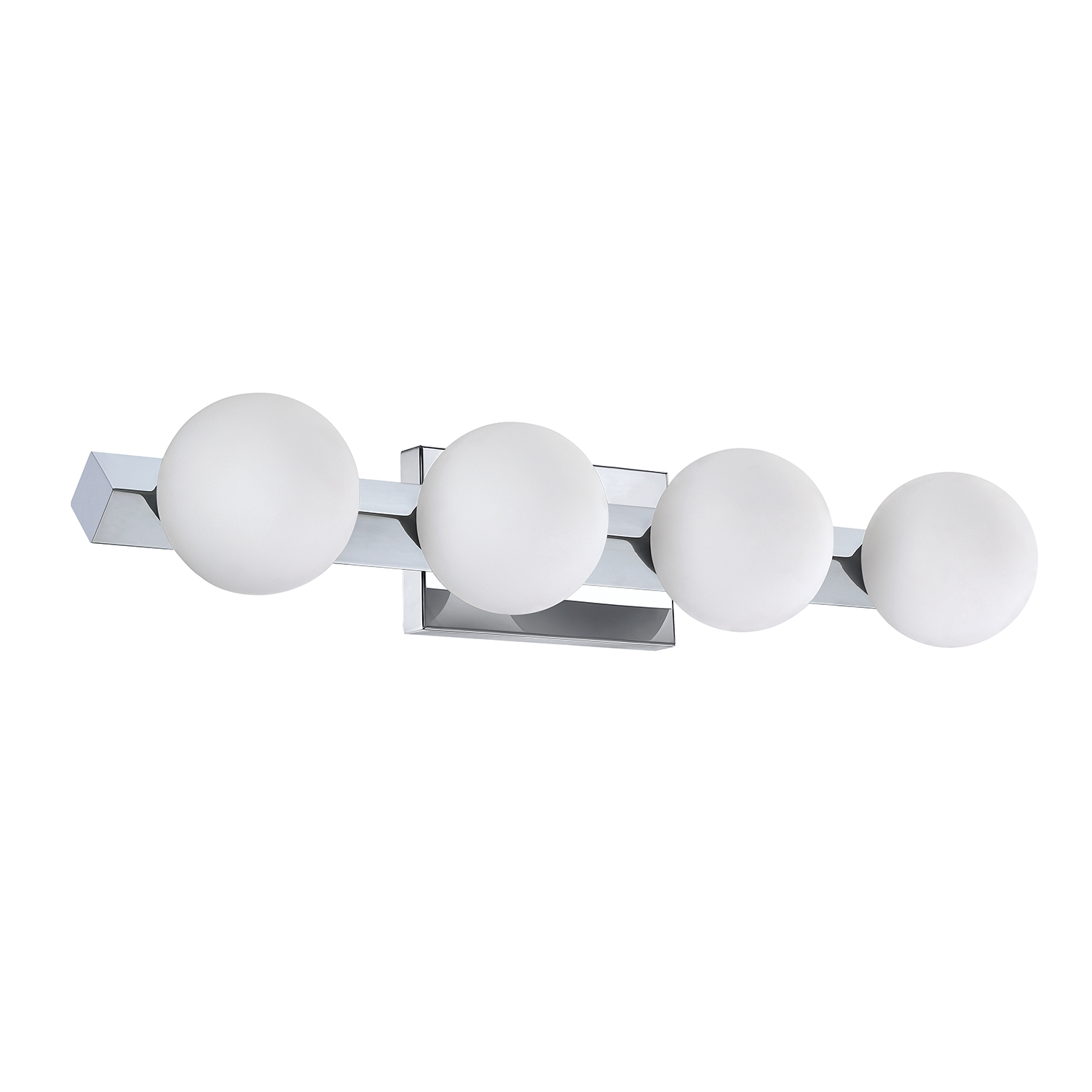 Elevate your bathroom or vanity space with the ORBITRON 4-Light Chrome Vanity, a stunning blend of modern design and functional lighting. Featuring a sleek chrome finish, this vanity light fixture is not only visually appealing but also durable, constructed from high-quality steel. The four opal white glass globes provide a soft and inviting glow, creating the perfect ambiance for your daily routines. With an extension of 6.7 inches and an overall height of 4.7 inches, this versatile fixture complements various interior styles, making it an ideal choice for both contemporary and traditional settings.