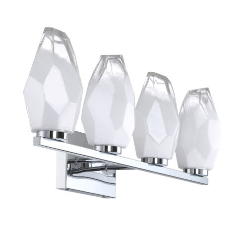 Elevate your bathroom or vanity area with the SOREN 4-Light Chrome Vanity Light, an exquisite fixture that combines modern design with functional elegance. Featuring a sleek chrome finish, this vanity light is accented by clear-tipped sculpted ice glass shades that provide a stunning visual appeal while diffusing light effectively. With an overall width of 27.6 inches, an overall height of 10.6 inches, and an extension of 6.7 inches, the SOREN fixture is perfectly sized to complement a variety of spaces, making it an ideal choice for any contemporary home decor. The G9 bulb type allows for versatility in lighting options, ensuring you achieve the perfect ambiance for your routines.
