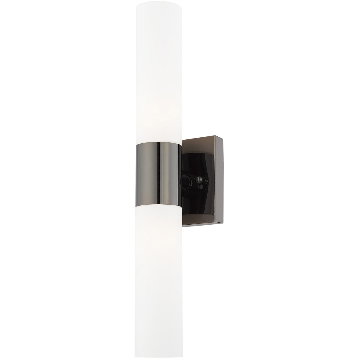 With the sleek contemporary design, the Aero bath bar casts a soft, flattering light which can be mounted horizontally or vertically. The tubular etched opal glass diffuses the light of two lamps. Available in antique brass, polished brass, polished chrome, satin brass, black chrome or brushed nickel.