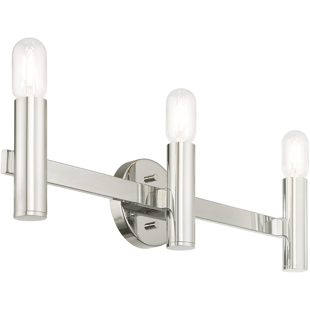 Exposed bulb sockets are fixed over polished chrome to create an eclectic look perfect for mid century modern or transitional spaces wanting an industrial touch.
