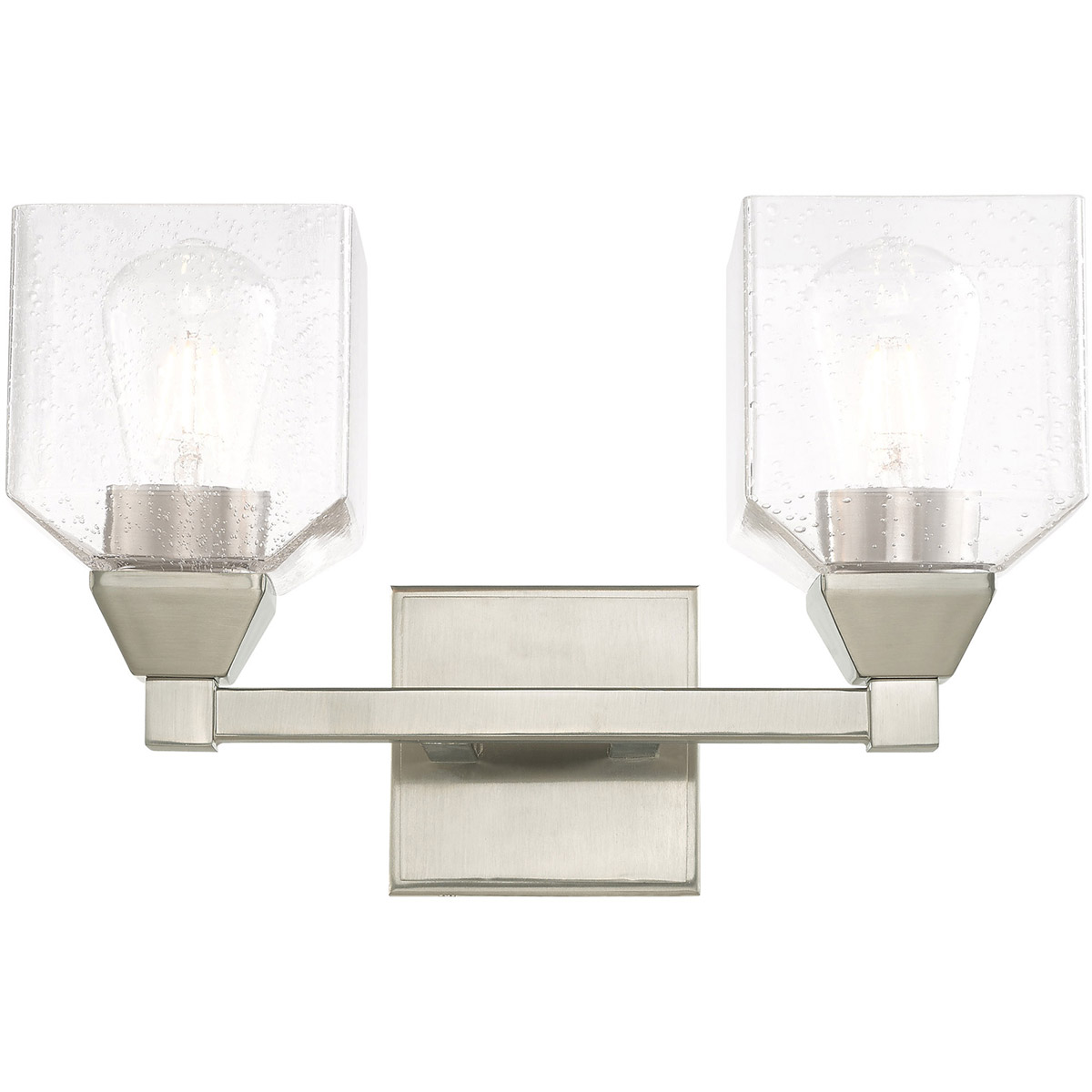 15 inch 2 Light Brushed Nickel Bathroom Vanity light fixture with Hand Blown Clear Seeded Glass Shade-Lighting Lumens