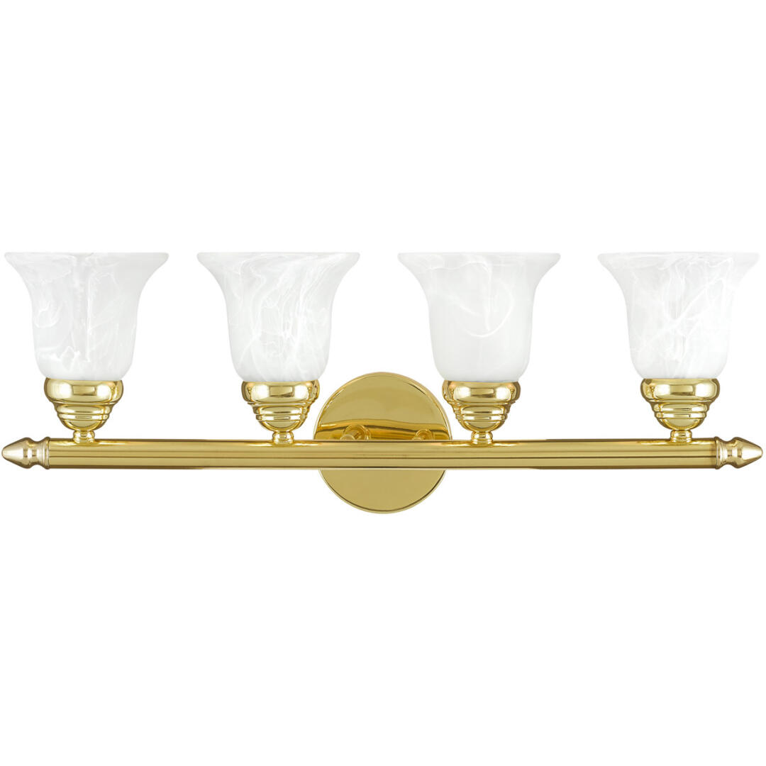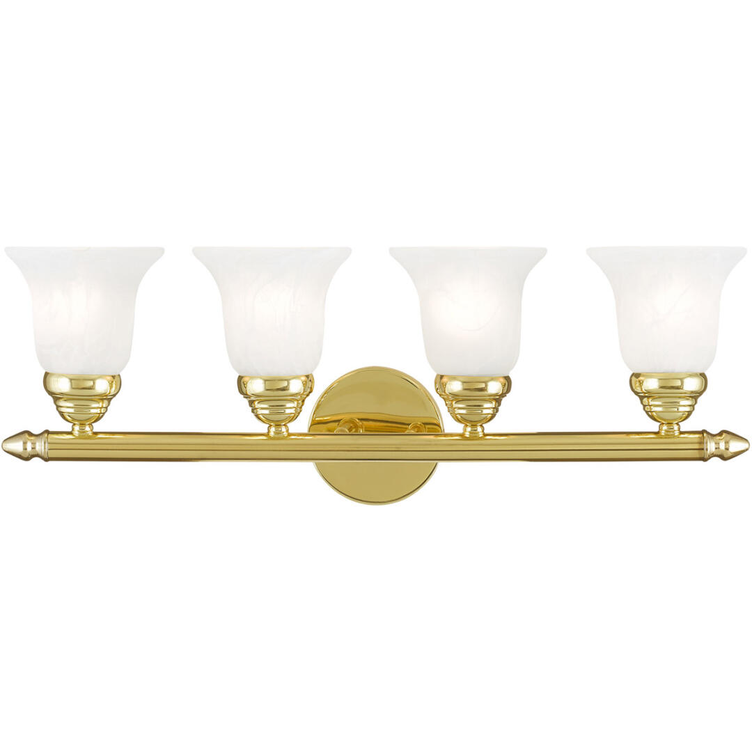 24 inch 4 Light Polished Brass Bathroom Vanity light fixture with White Alabaster Glass Shade-Lighting Lumens