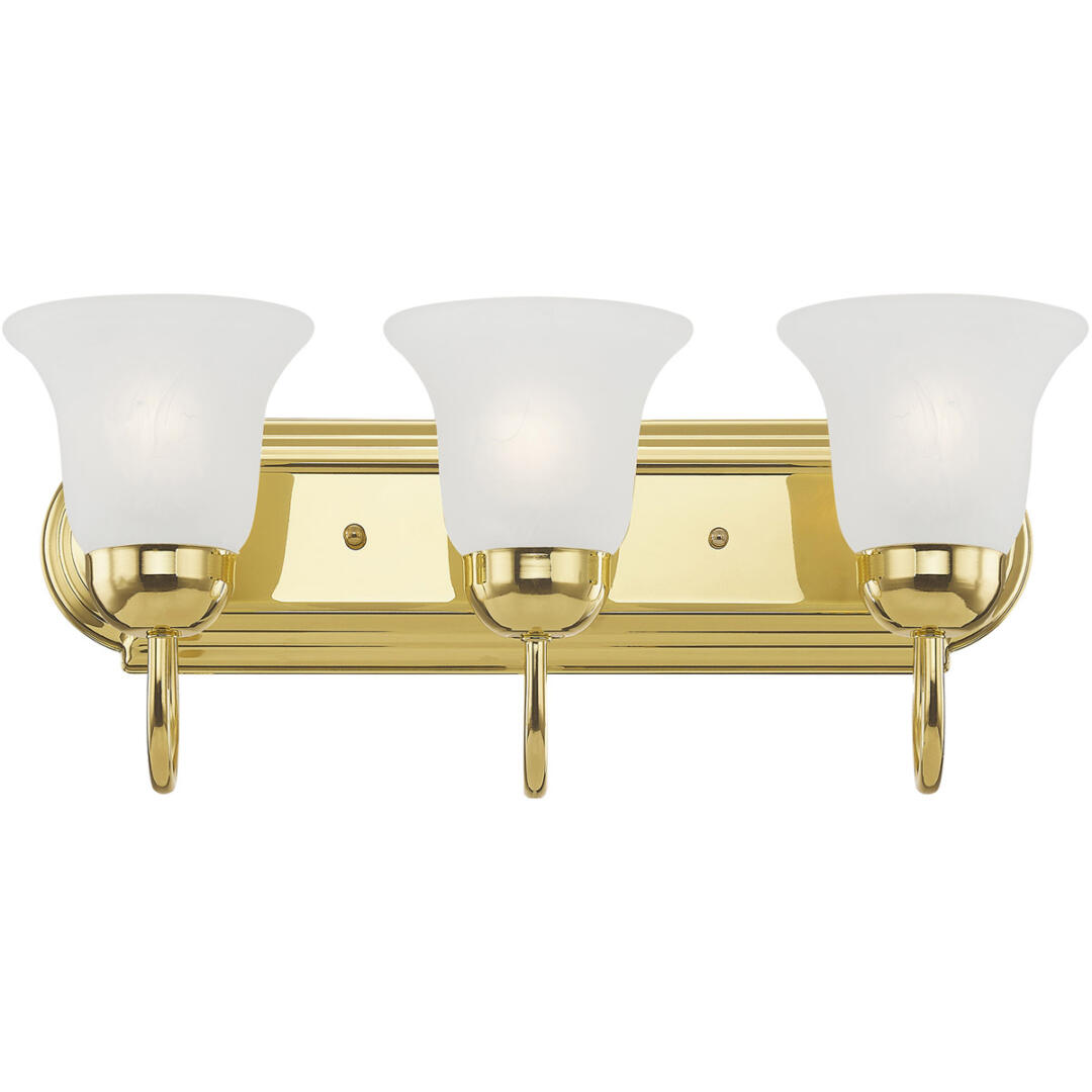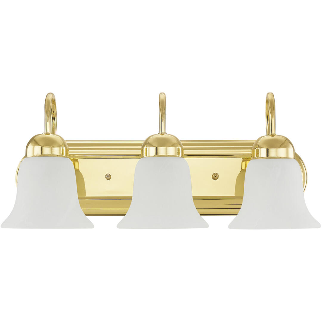 For a classic and clean look in the bathroom, this bath bar provides fantastic, versatile lighting with flawless precision. Our polished brass finish is combined with white alabaster glass for an elegant purity that will bring out the best in your bathroom.