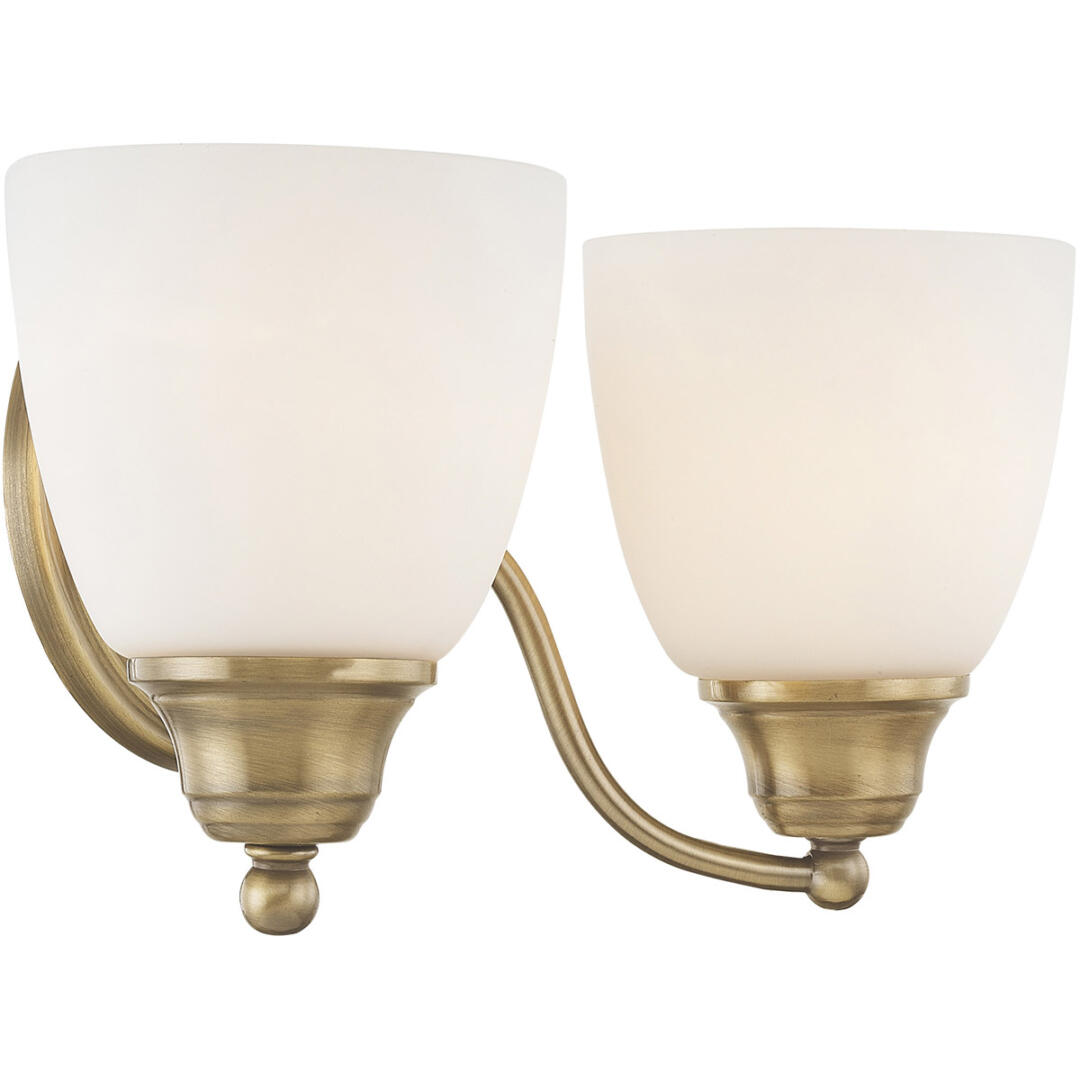 15.25 inch 2 Light Antique Brass Bathroom Vanity light fixture with Hand Blown Satin Opal White Glass Shade-Lighting Lumens