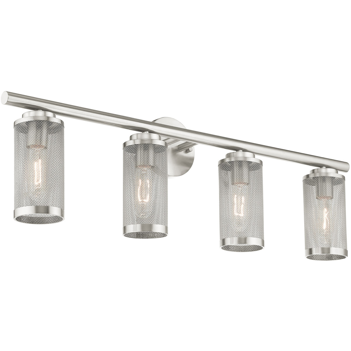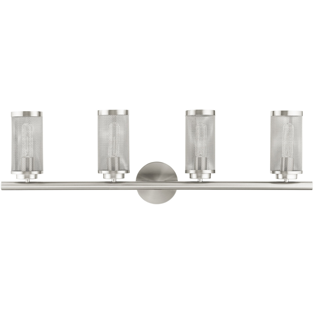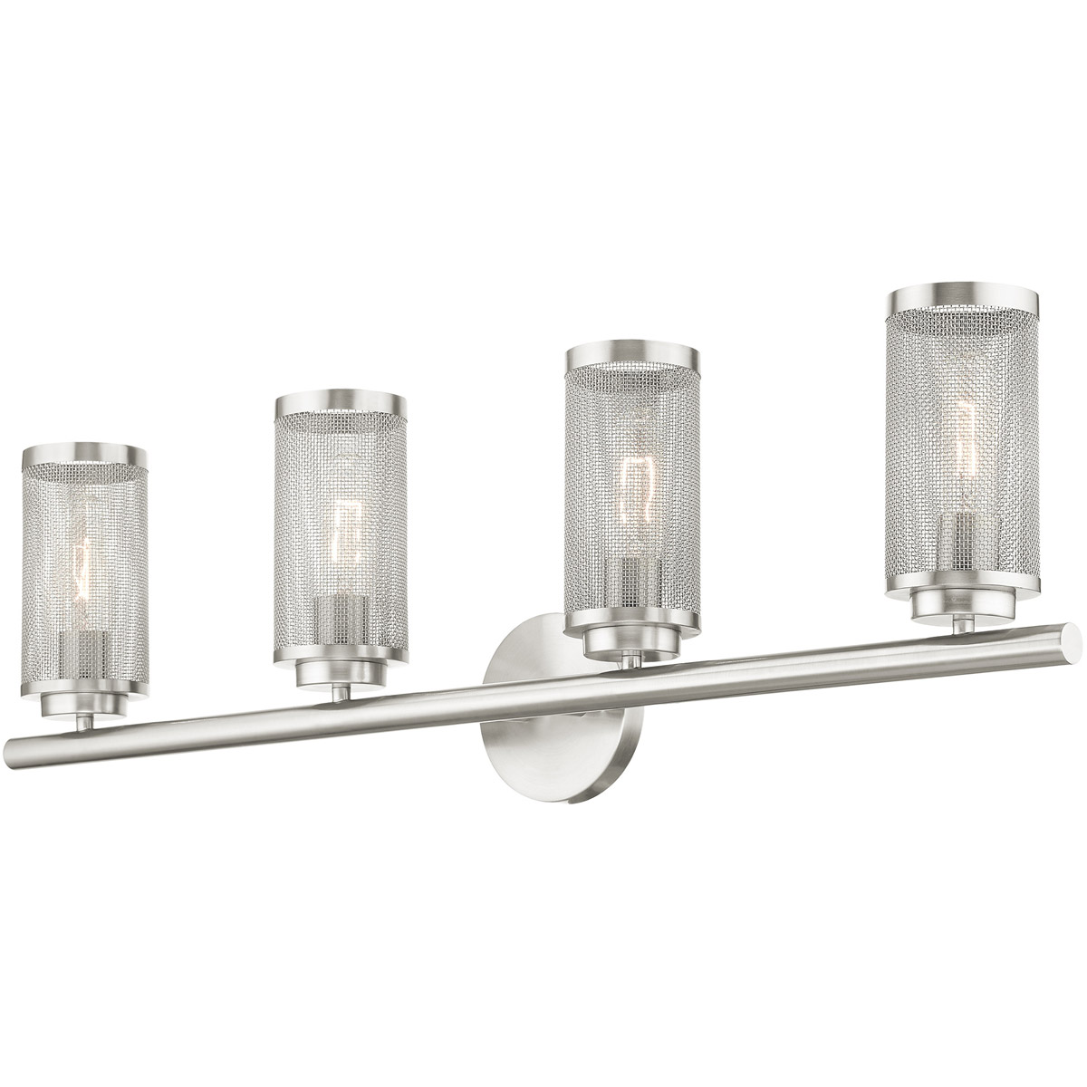 The Industro collection has a clean, crisp look and contemporary appeal. This four-light vanity sconce has a brushed nickel finish and a sleek stainless steel mesh shade. This vanity sconce easily fits into industrial, transitional or modern classic bathrooms.