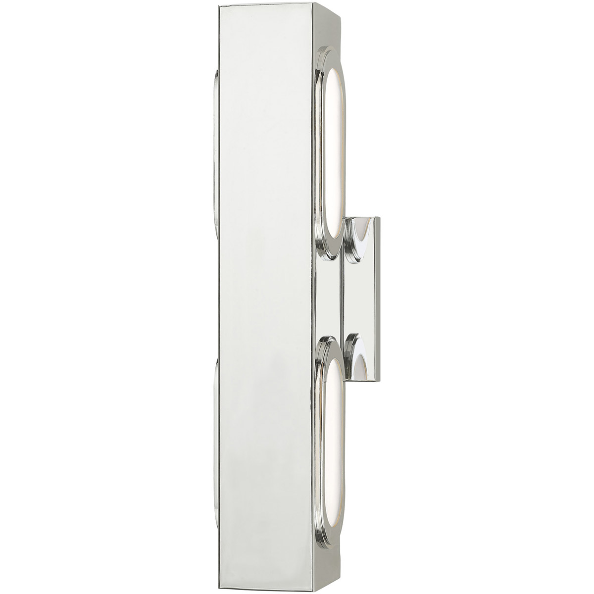 The simple, elegant design of the Kimball offers contemporary styling while fitting in to a modern space. The polished chrome finish raises the ambiance in any room, and the etched opal glass shades bring an artful look while the up and down LED provides plenty of light in your space. This can also be used as a wall sconce when mounted vertically.