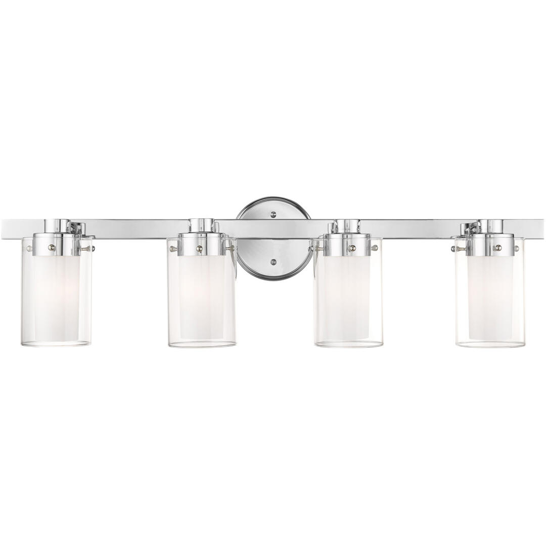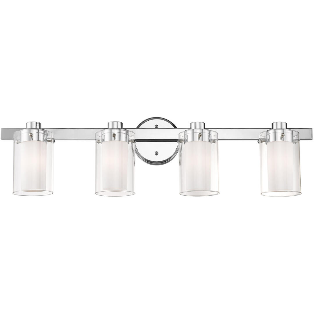 31.5 inch 4 Light Polished Chrome Bathroom Vanity light fixture with Clear Outside Glass & Opal Inside Glass Shade-Lighting Lumens