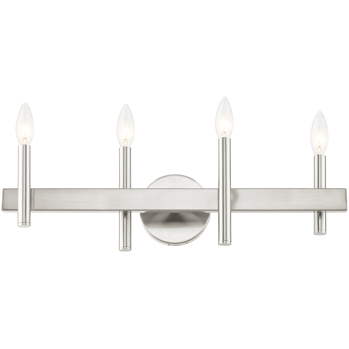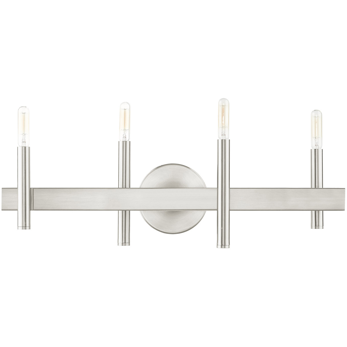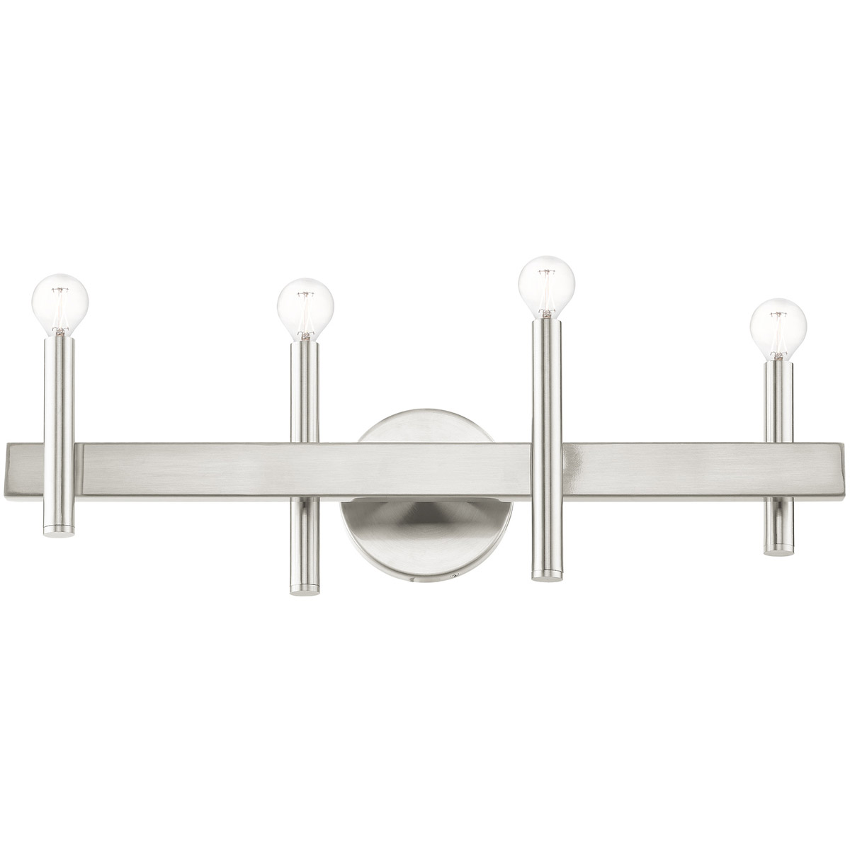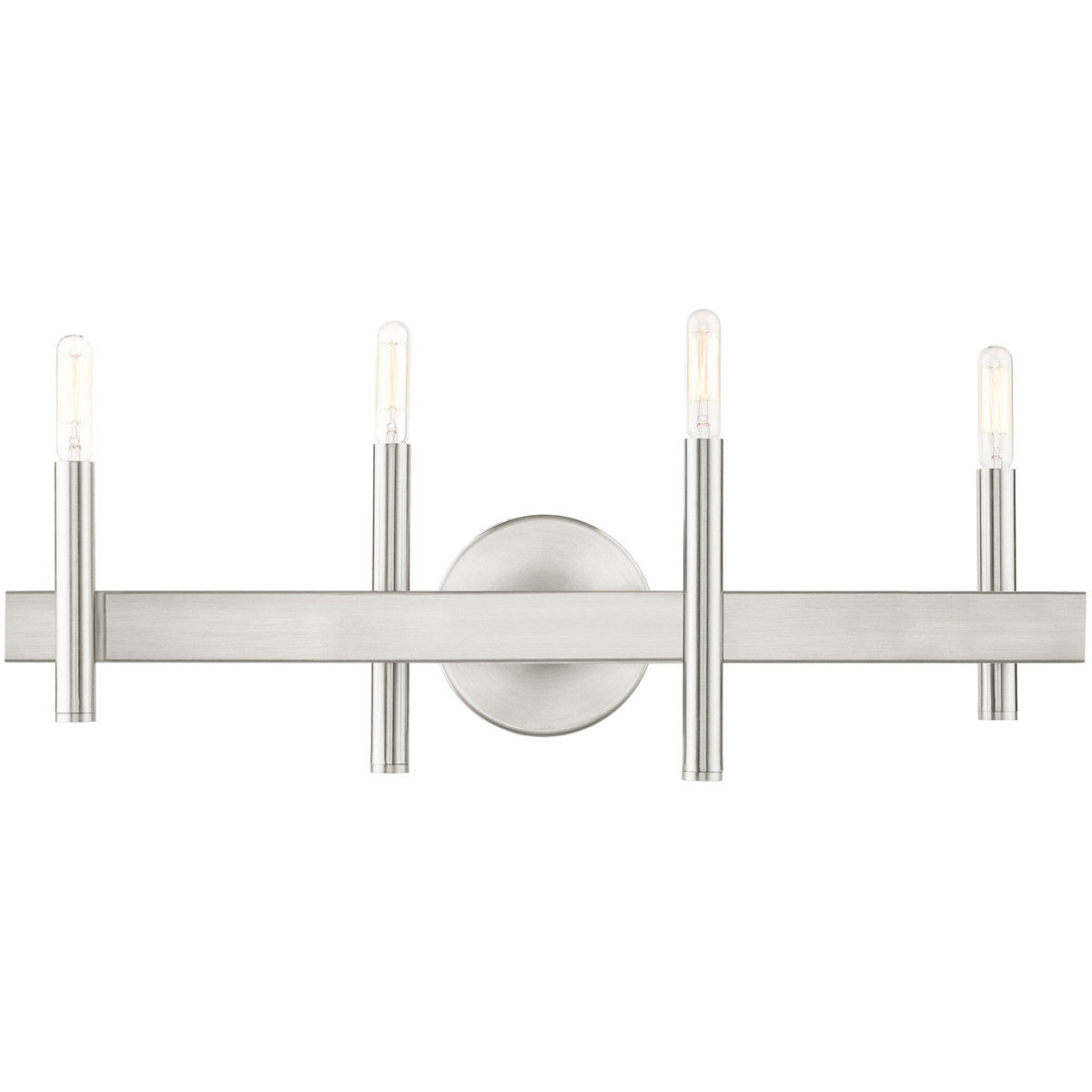 Clean lines and exposed bulb sockets make the Denmark collection perfect for your mid-mod or transitional bath. The eclectic look is perfect for spaces wanting an urban, minimalistic or industrial touch. With superb craftsmanship and affordable price, this brushed nickel finish four-light vanity sconce is sure to tastefully indulge your extravagant side.