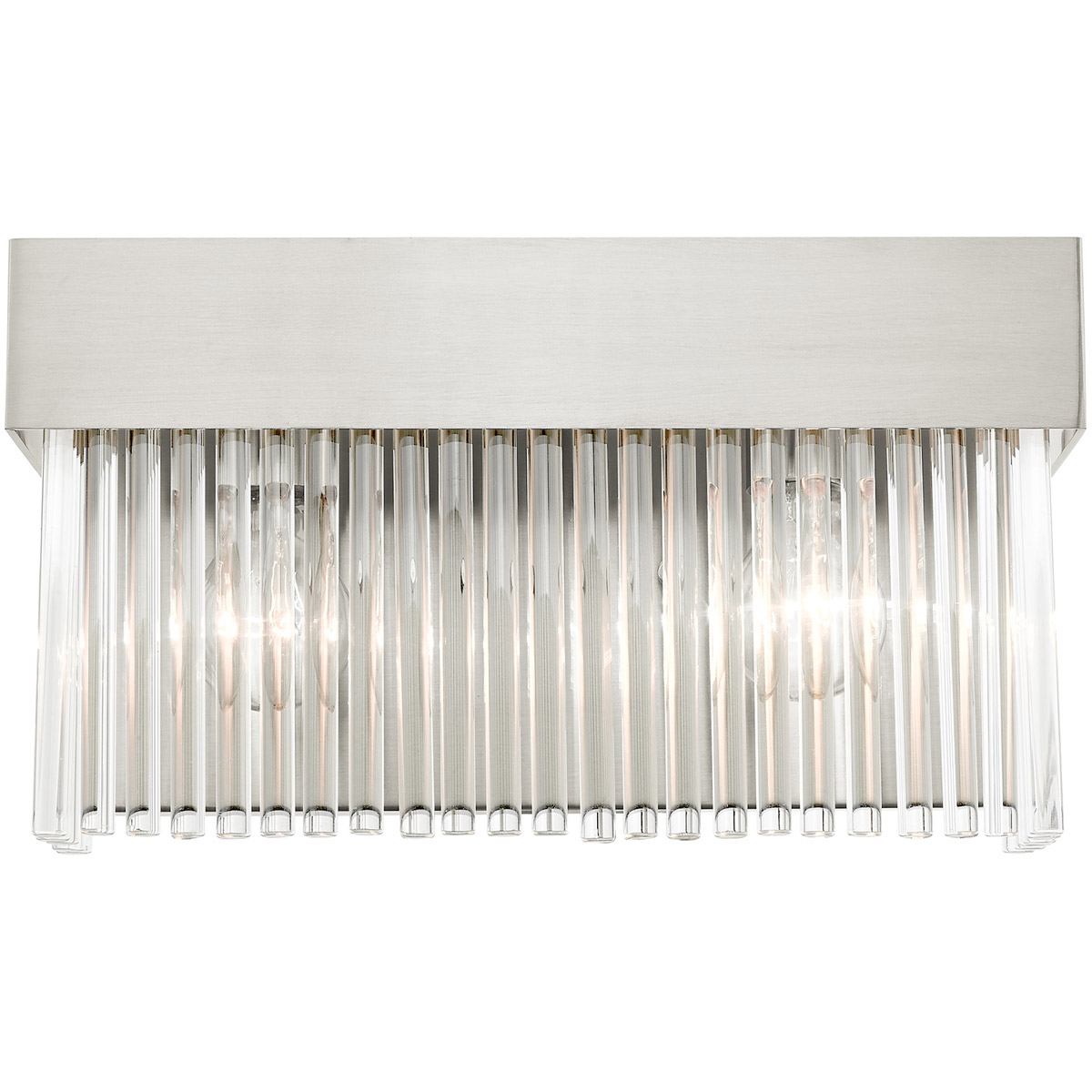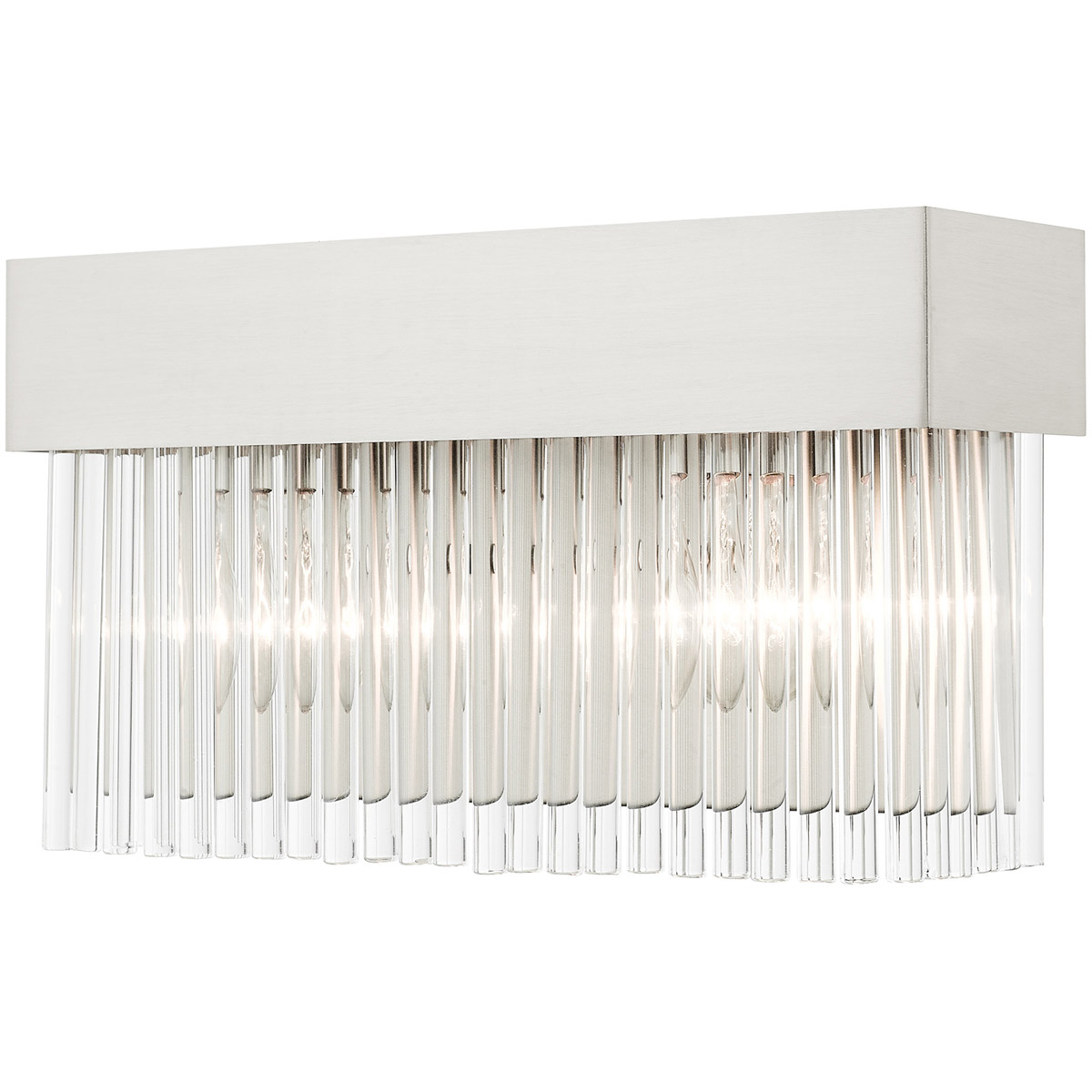 The Norwich ADA two-light crystal sconce will become an attention-grabbing feature in your modern home decor. The brushed nickel finish graces the design with elegance and charm, providing a timeless and glamorous quality to any interior. The clear crystal rods give the sconce a sleek and attractive appearance.
