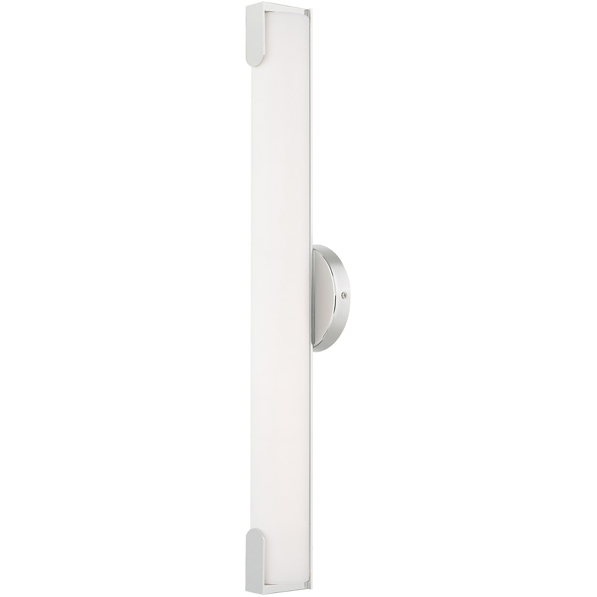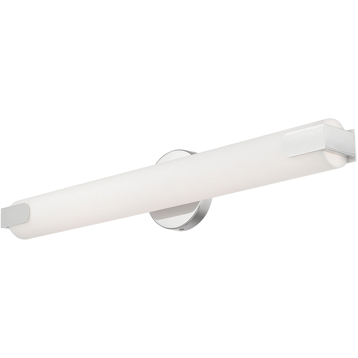 A simple satin white acrylic shade creates the bold appearance of this contemporary bath light. The polished chrome frame encloses this energy-efficient design that glows with uniform light from an integrated LED module. Can be installed vertically or horizontally.