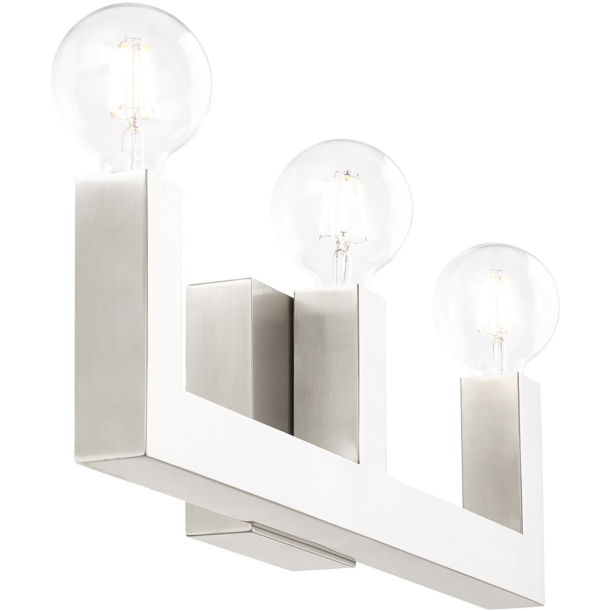 Less is more with this sleek minimalist styled bath vanity light from the Solna collection. With the brushed nickel finish stainless steel square tubular arms, this three-light vanity sconce is the perfect fixture for adding modern pizzazz to your bath.