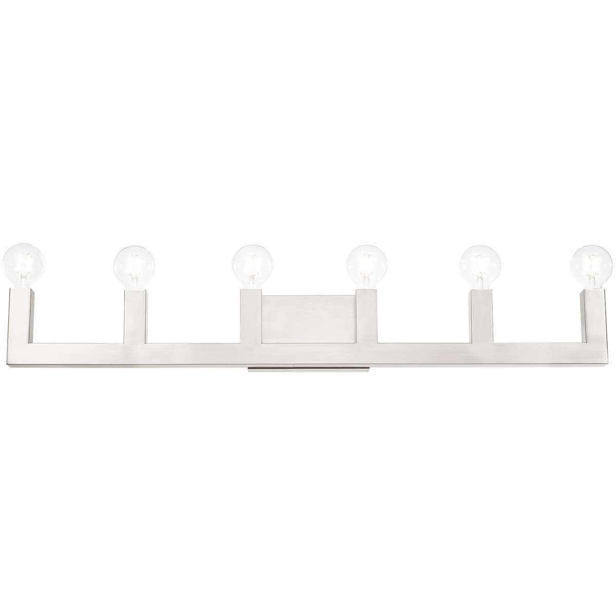 Less is more with this sleek minimalist styled bath vanity light from the Solna collection. With the brushed nickel finish stainless steel square tubular arms, this six-light vanity sconce is the perfect fixture for adding modern pizzazz to your bath.
