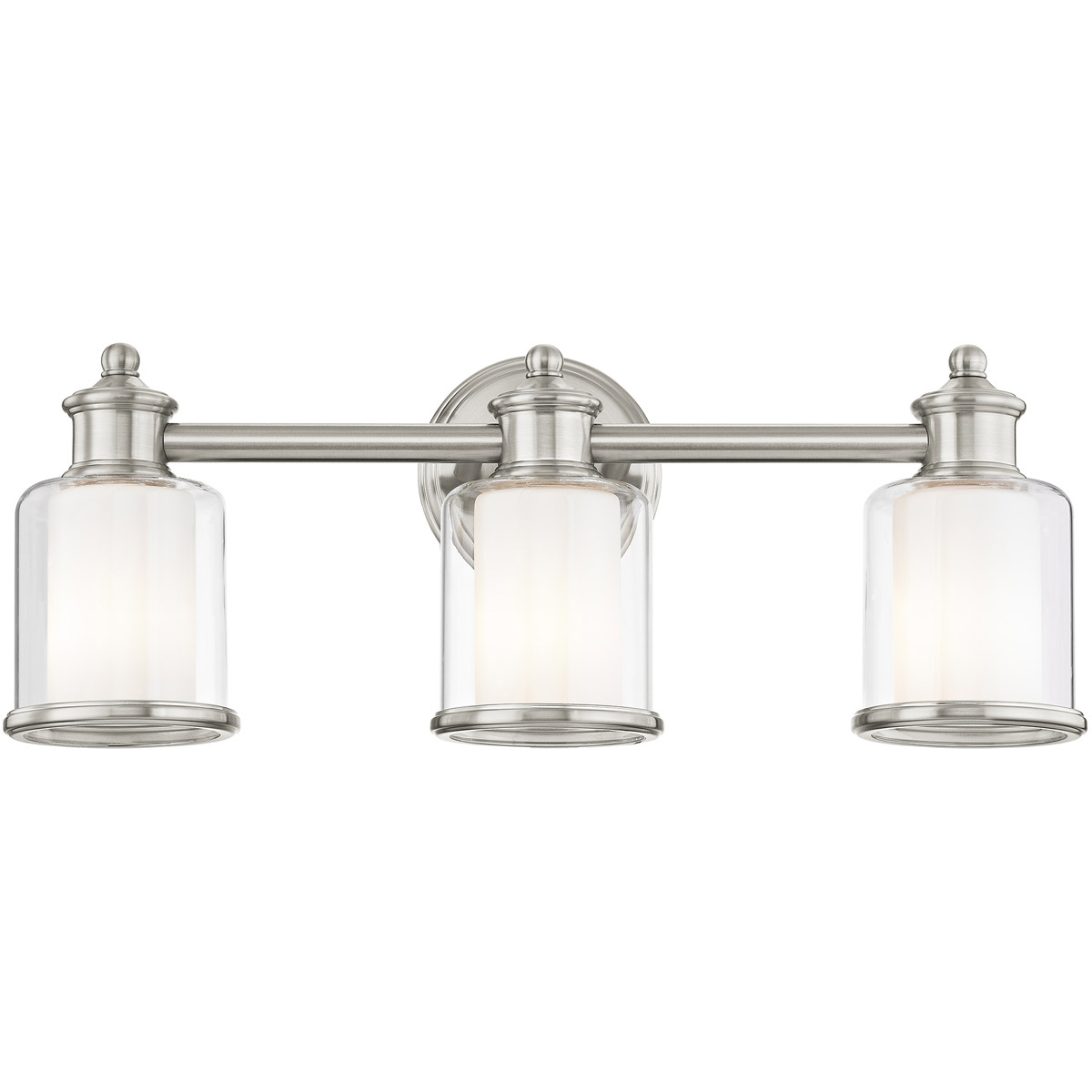 23.5 inch 3 Light Brushed Nickel Bathroom Vanity light fixture with Hand Crafted Clear Glass Shade-Lighting Lumens