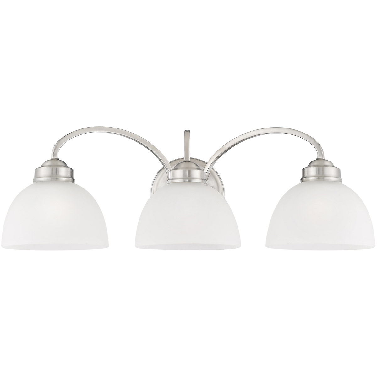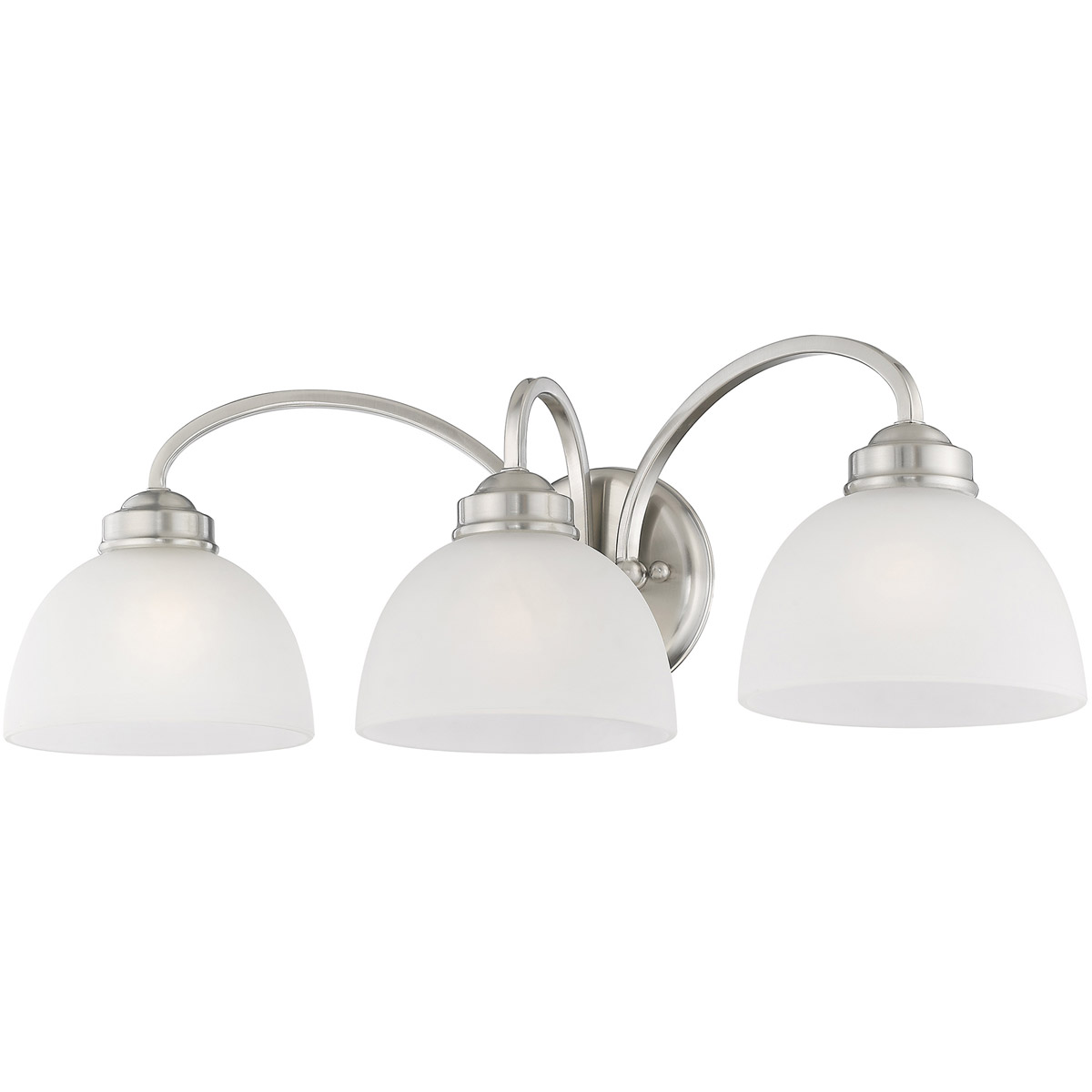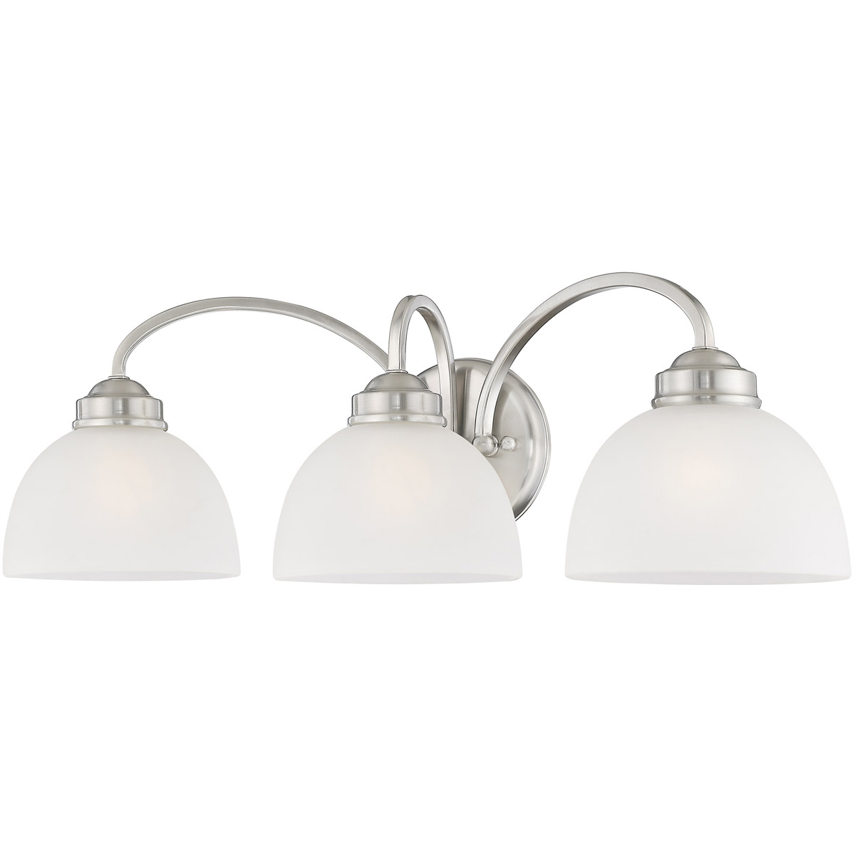 Smooth lines meet gorgeous materials in our Somerset collection. The sleek design will add contemporary class and appeal to your home. This three light bath fixture features a brushed nickel finish with satin glass.