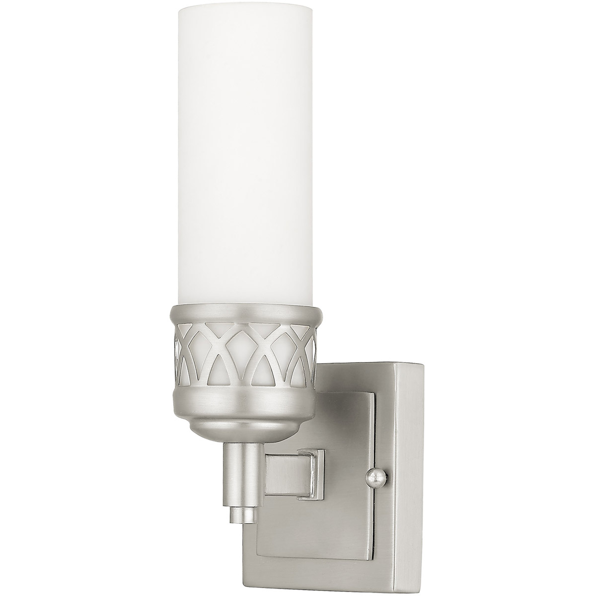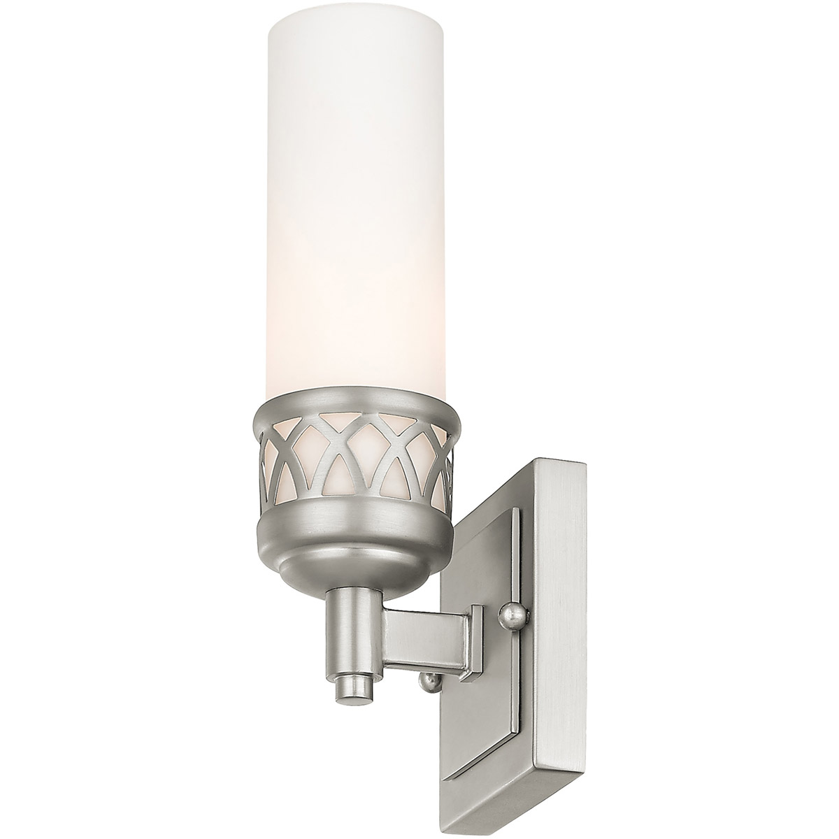 Featuring a smooth cylindrical hand blown satin opal white glass shade for a discerning touch, this contemporary bath fixture features a round framing and classic squared backplate. Finished in an on-trend brushed nickel hue, it’s a definitive look for contemporary and classic looks alike.