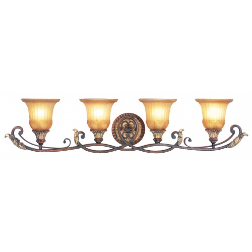 Finish: Hand Applied Verona Bronze with Aged Gold Leaf Accents | Number of Bulb: 4 |