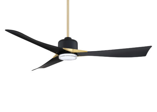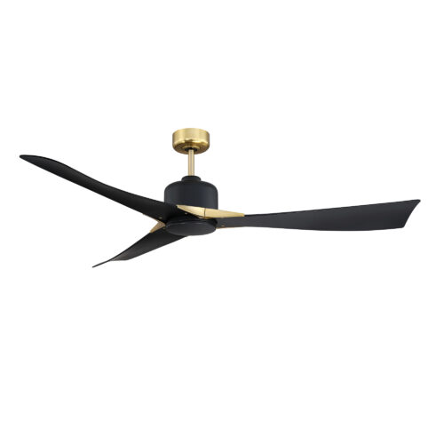 ARIYA 62 in. 3 Blade DC Motor Ceiling Fan with Adjustable Color LED Light Kit and Remote Control in a Black & Brass finish with Black blades. The included Full-function Remote Control provides 6 Speeds, CCT (LED Color) Adjustability, LED Dimmer, 2/4/8 Hour Timer to shut Fan off Automatically, and a Variable Wind feature which modulates Fan Speed to simulate a Natural Breeze.