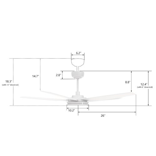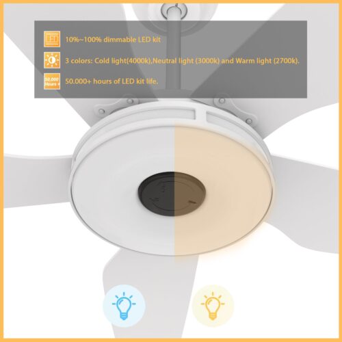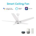 This Elira 52” smart ceiling fan keeps your space cool, bright, and stylish. It is a soft modern masterpiece perfect for your large indoor living spaces. This Wi-Fi smart ceiling fan is a simplicity designing with White finish, use elegant Plywood blades and has an integrated 4000K LED cool light. The fan features Remote control, Wi-Fi apps, Siri Shortcuts and Voice control technology (compatible with Amazon Alexa and Google Home Assistant, but not included) to set fan preferences.
