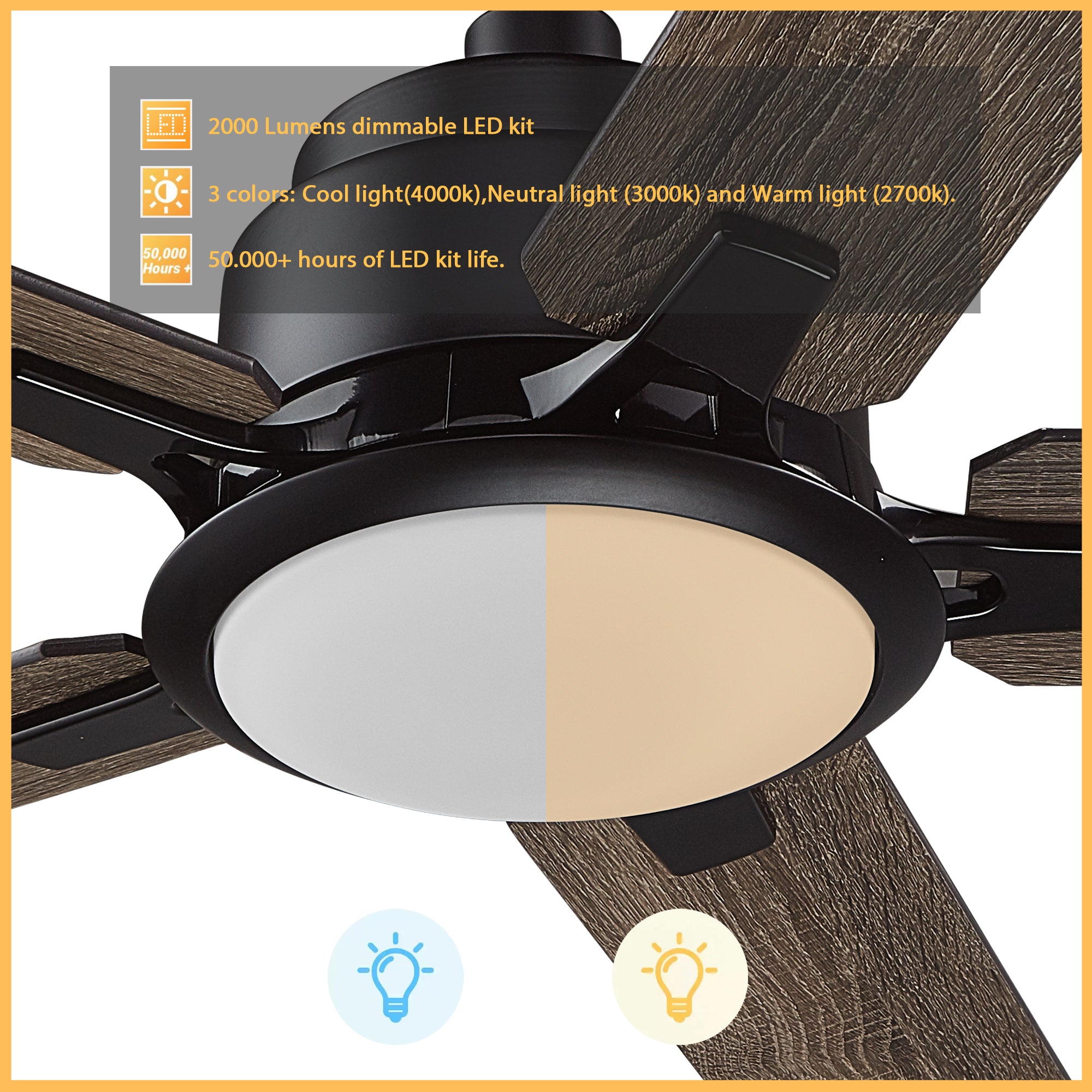 - Includes integrated LED light kit with warm light and cool light, it offers lower energy consumption and a longer life span