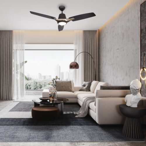 This Eunoia 52” Smart Ceiling Fan keeps your space cool, bright, and stylish. It is a soft modern masterpiece perfect for your large indoor living spaces. This Wi-Fi smart ceiling fan is a simplicity designing with Black finish, use elegant Plywood blades and compatible with LED Light. The fan features wall control, Wi-Fi apps, Siri Shortcuts and Voice control technology (compatible with Amazon Alexa and Google Home Assistant ) to set fan preferences.