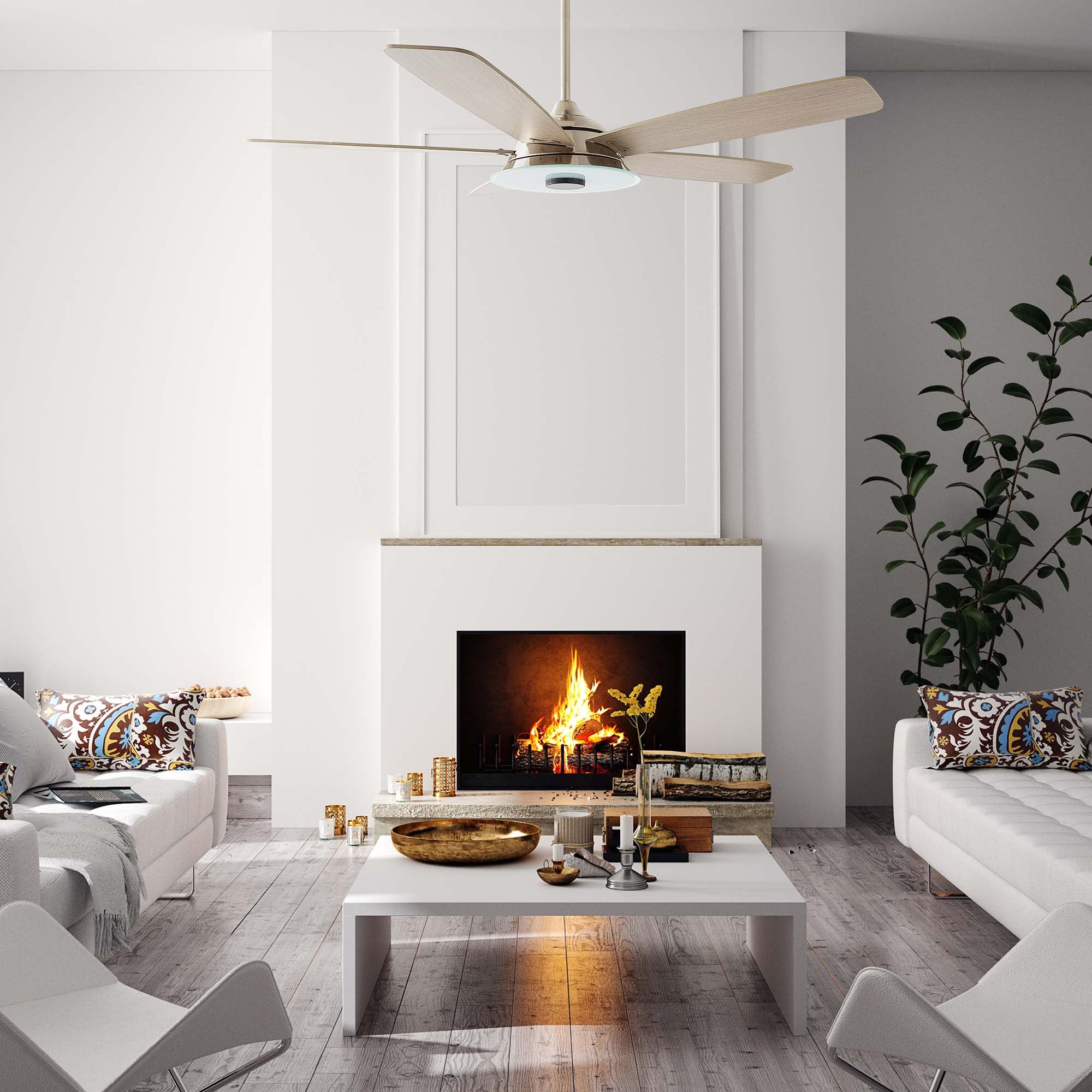 This Journey 52” smart ceiling fan keeps your space cool, bright, and stylish. It is a soft modern masterpiece perfect for your large indoor living spaces. This Wi-Fi smart ceiling fan is a simplicity designing with Silver finish, use elegant Plywood blades and has an integrated 4000K LED cool light. The fan features Remote control, Wi-Fi apps, Siri Shortcuts and Voice control technology (compatible with Amazon Alexa and Google Home Assistant ) to set fan preferences.