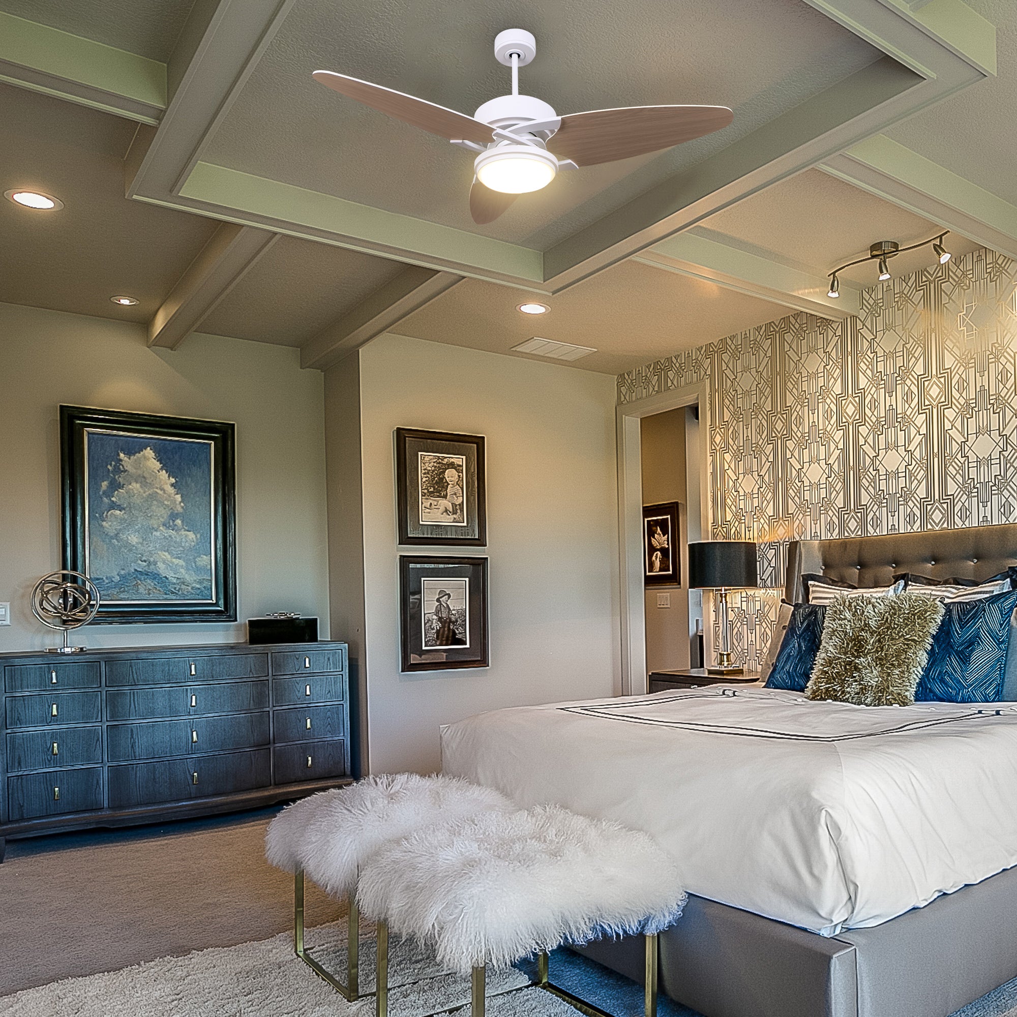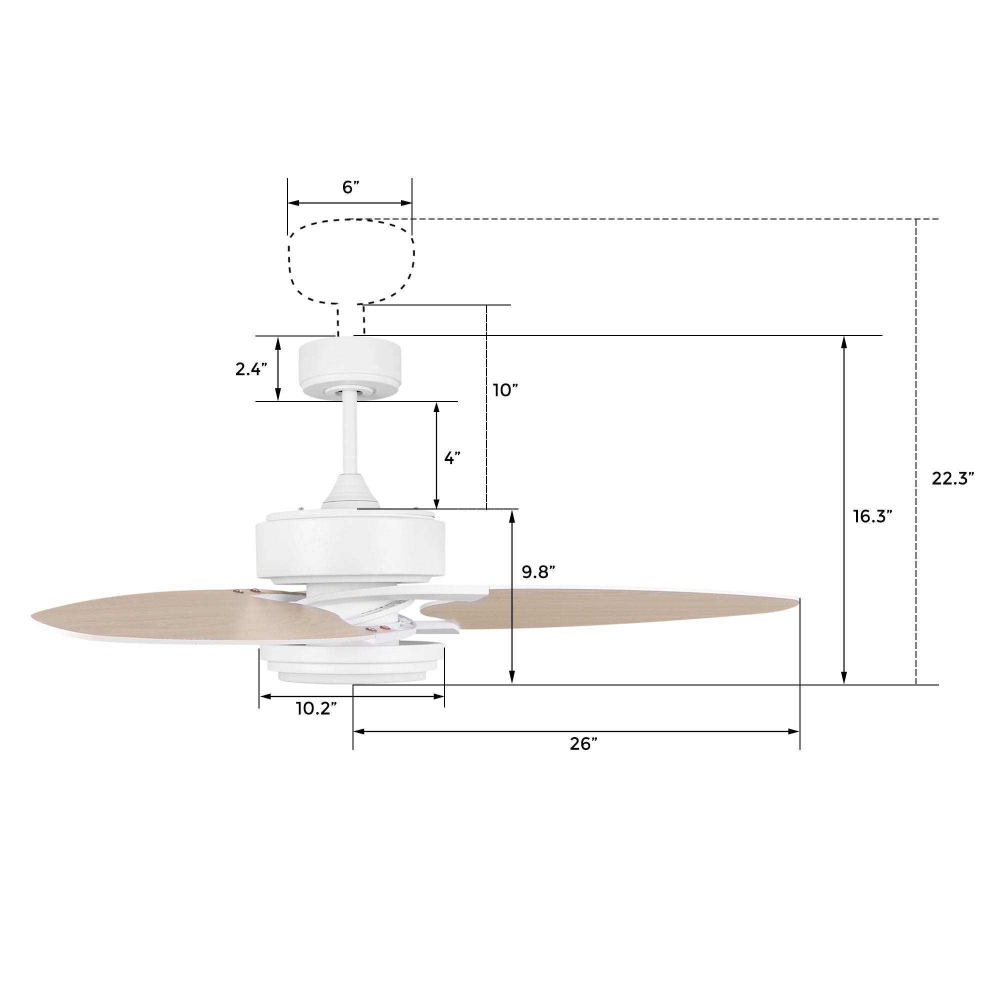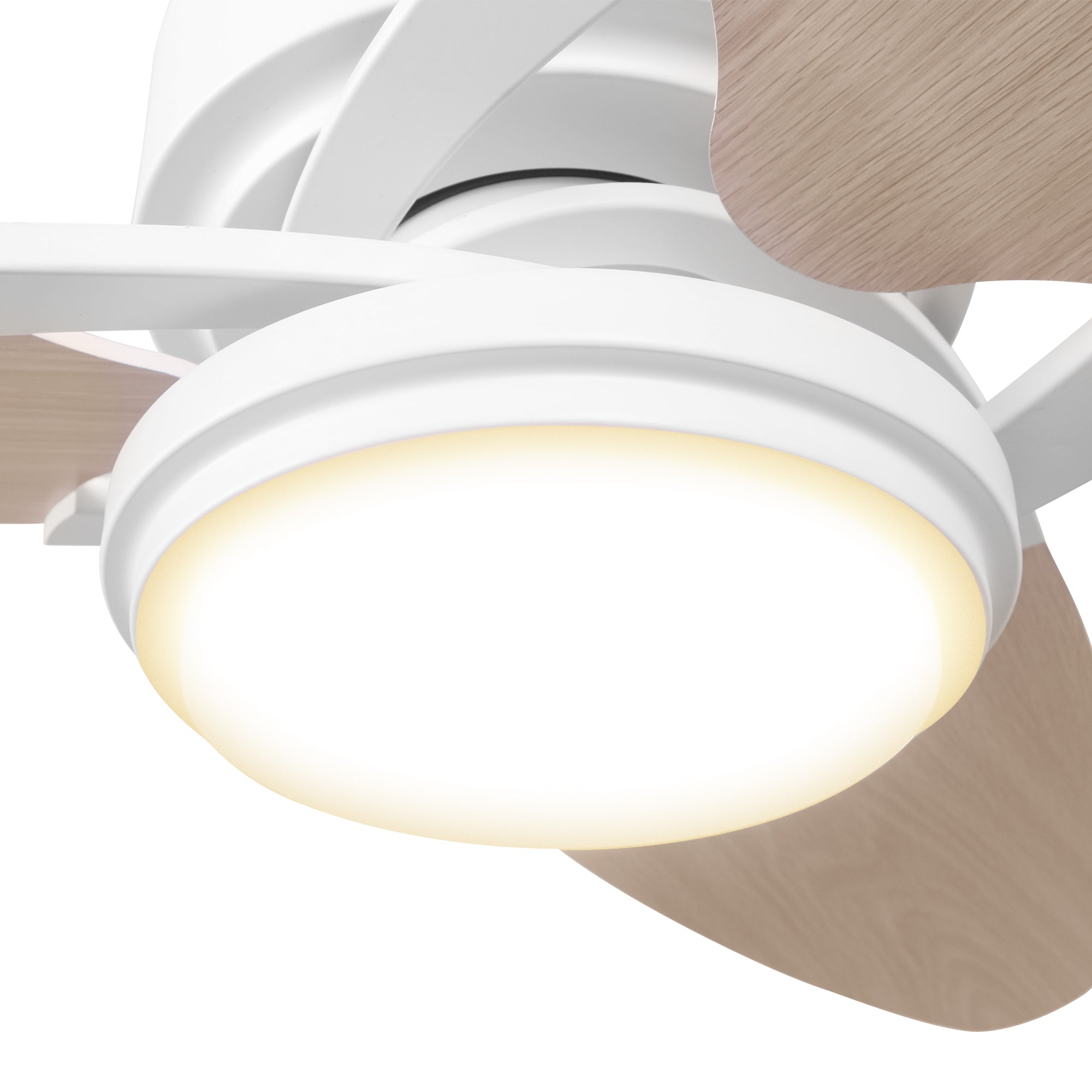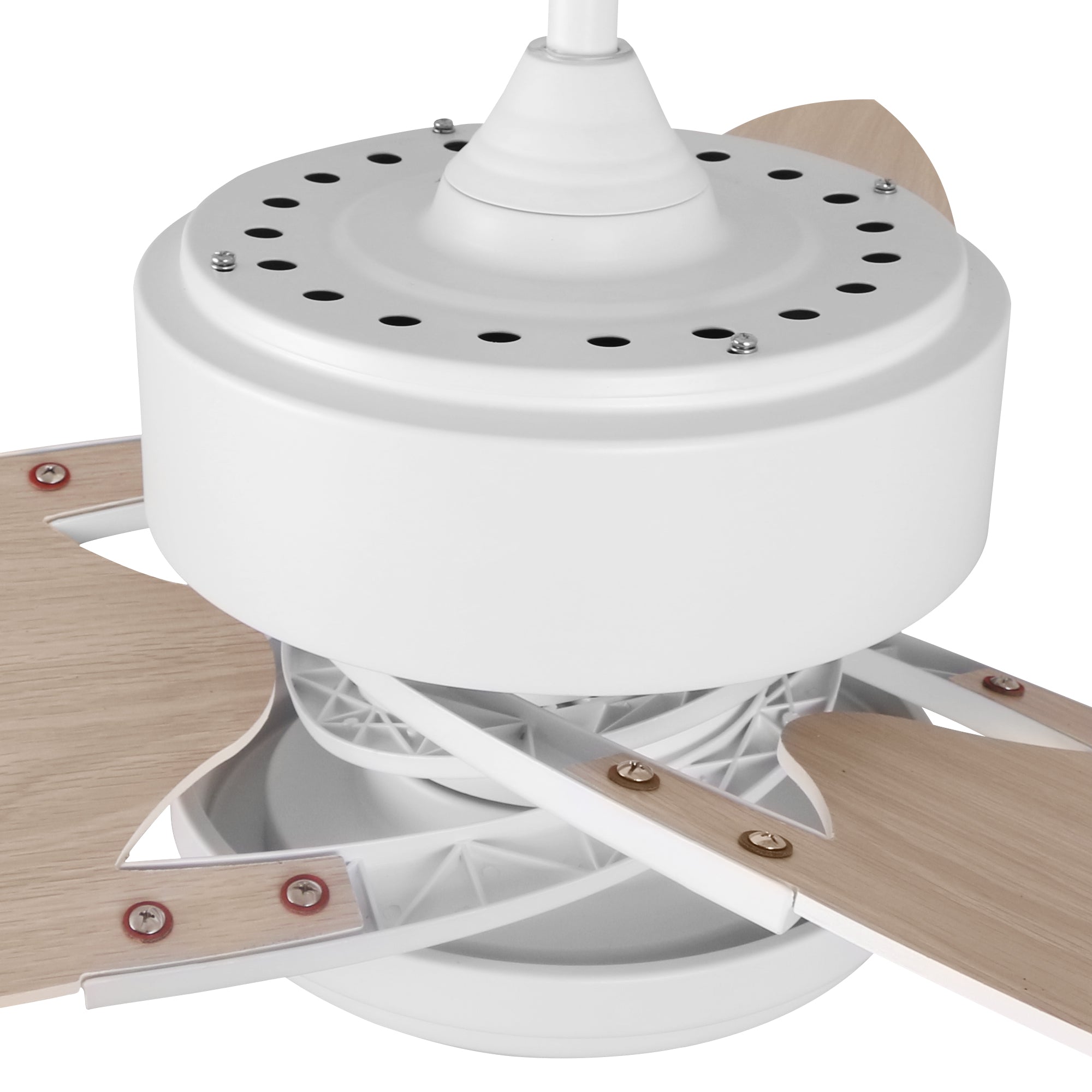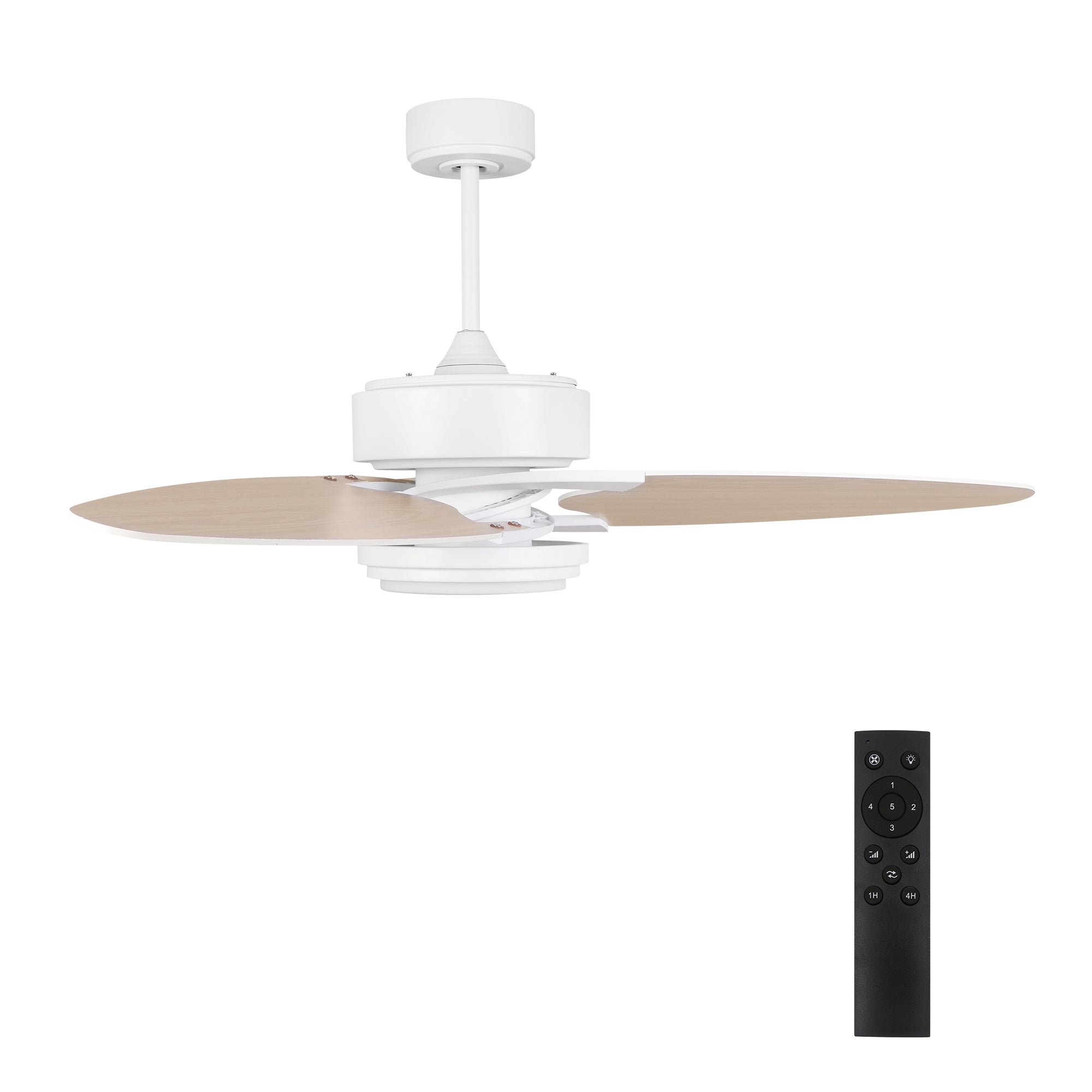 This Maddox 52” ceiling fan keeps your space cool, bright, and stylish. It is a soft modern masterpiece perfect for your indoor living spaces. This ceiling fan is a simplicity designing with White finish, use elegant Plywood blades and has an integrated 6000K LED daylight. The fan features remote control.