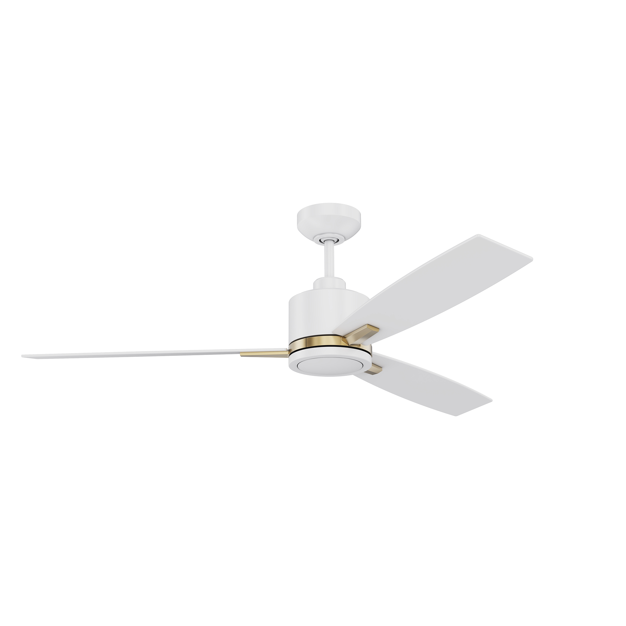 NUVEL 52 in. 3 Blade Ceiling Fan with LED Light Kit and Remote Control in a Matte White & Oilcan Brass finish with White blades
