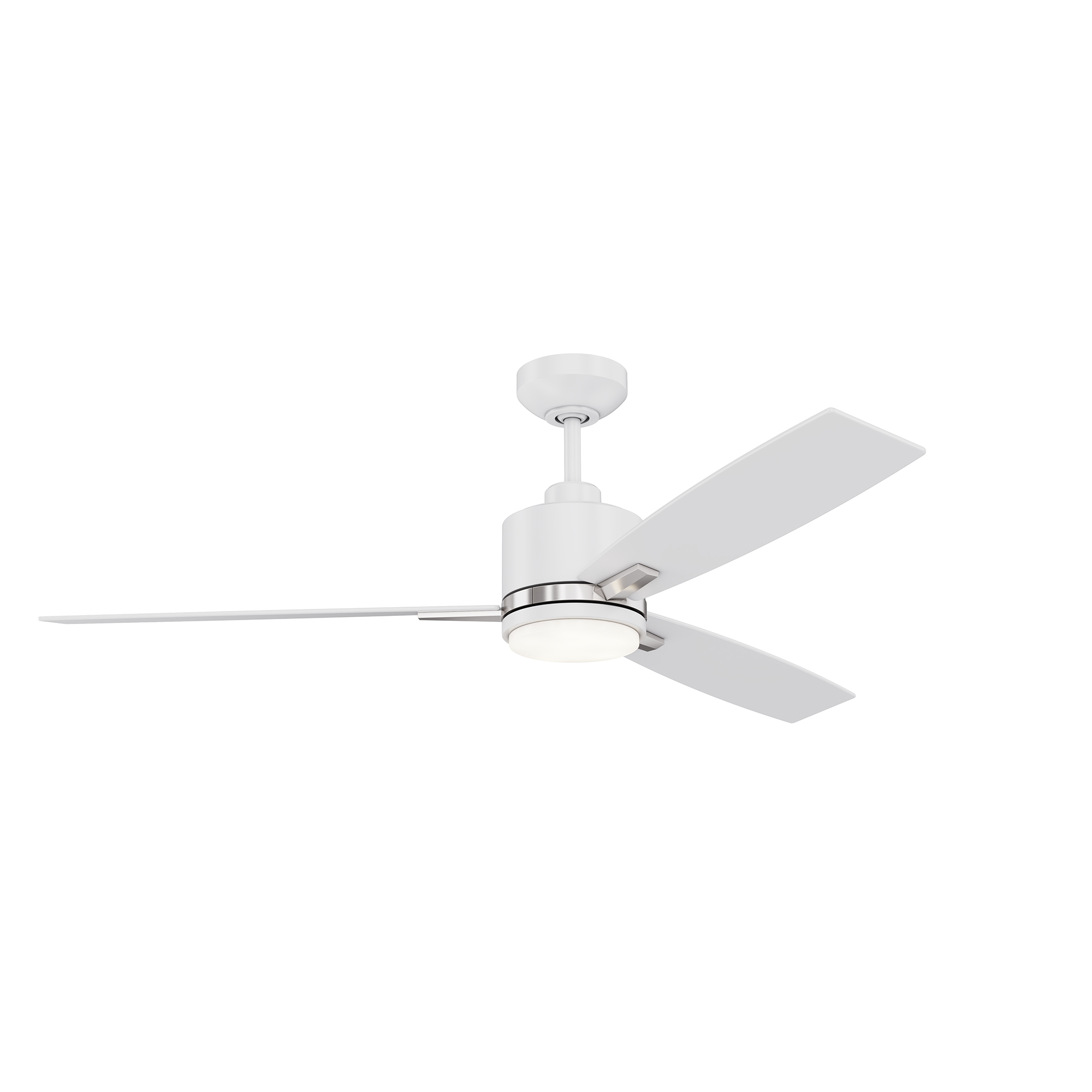 NUVEL 52 in. 3 Blade Ceiling Fan with LED Light Kit and Remote Control in a Matte White & Satin Nickel finish with White blades
