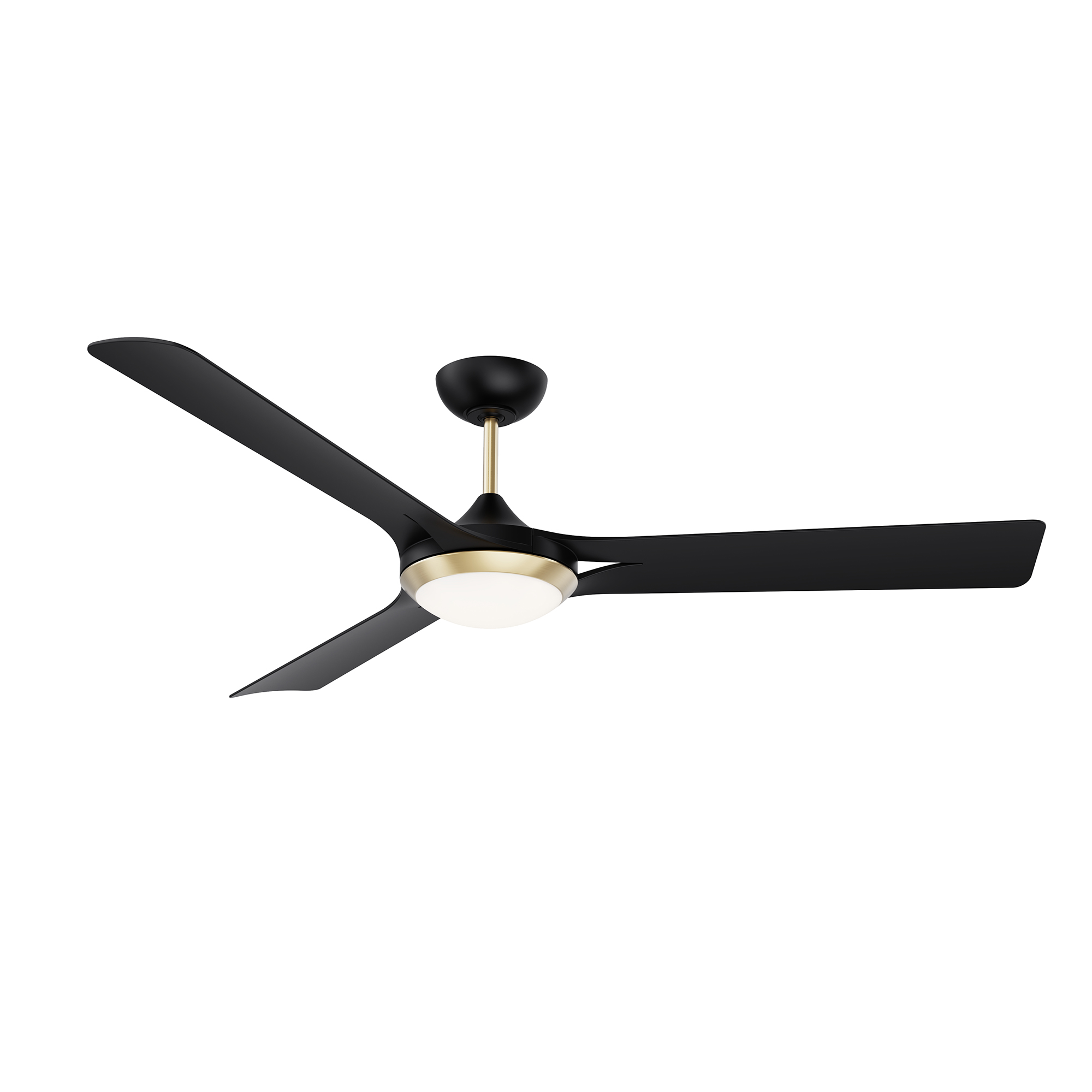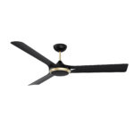 ORI 60 in. 3 Blade DC Motor Ceiling Fan with LED Light Kit and Remote Control in a Matte Black & Oilcan Brass finish with Black blades