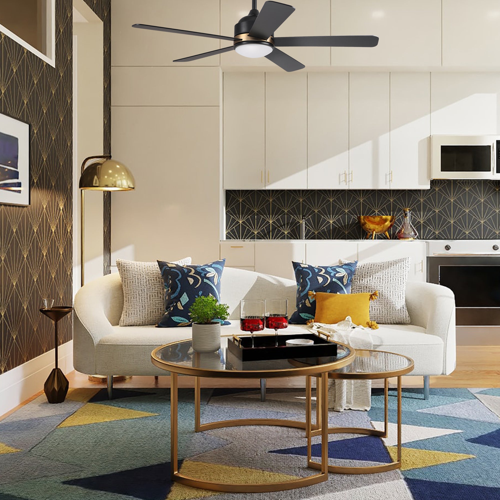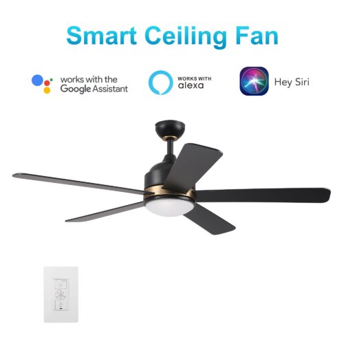 This Simoy 52” smart ceiling fan keeps your space cool, bright, and stylish. It is a soft modern masterpiece perfect for your large indoor living spaces. This Wi-Fi smart ceiling fan is a simplicity designing with Black finish, use elegant Black Plywood blades and has an integrated 3000K LED warm light. The fan features wall control, Wi-Fi apps, Siri Shortcuts and Voice control technology (compatible with Amazon Alexa and Google Home Assistant ) to set fan preferences.