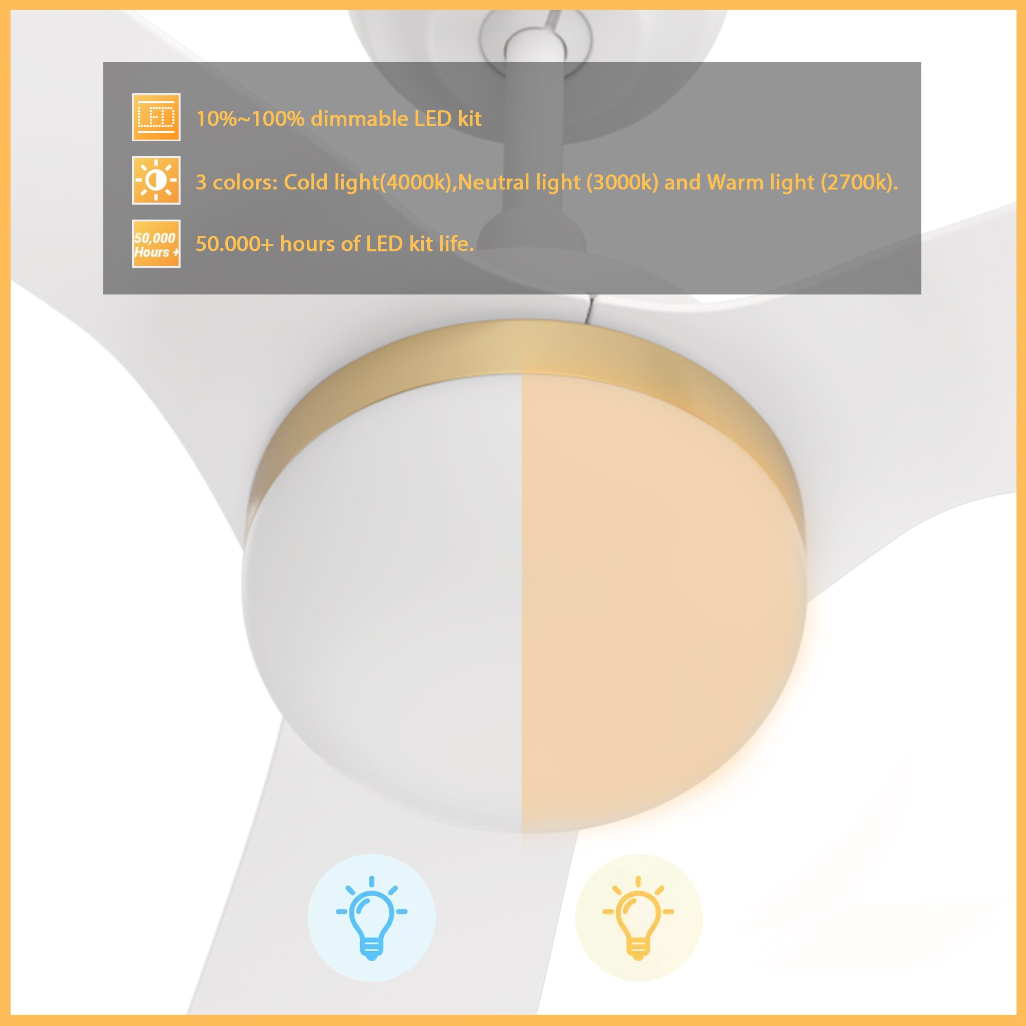 - Includes integrated LED light kit with warm light and cool light, it offers lower energy consumption and a longer life span