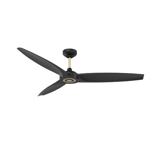 STELTRA 56 in. 3 Blade DC Motor Ceiling Fan with LED Light Kit and Remote Control in a Matte Black & Oilcan Brass finish with Black blades