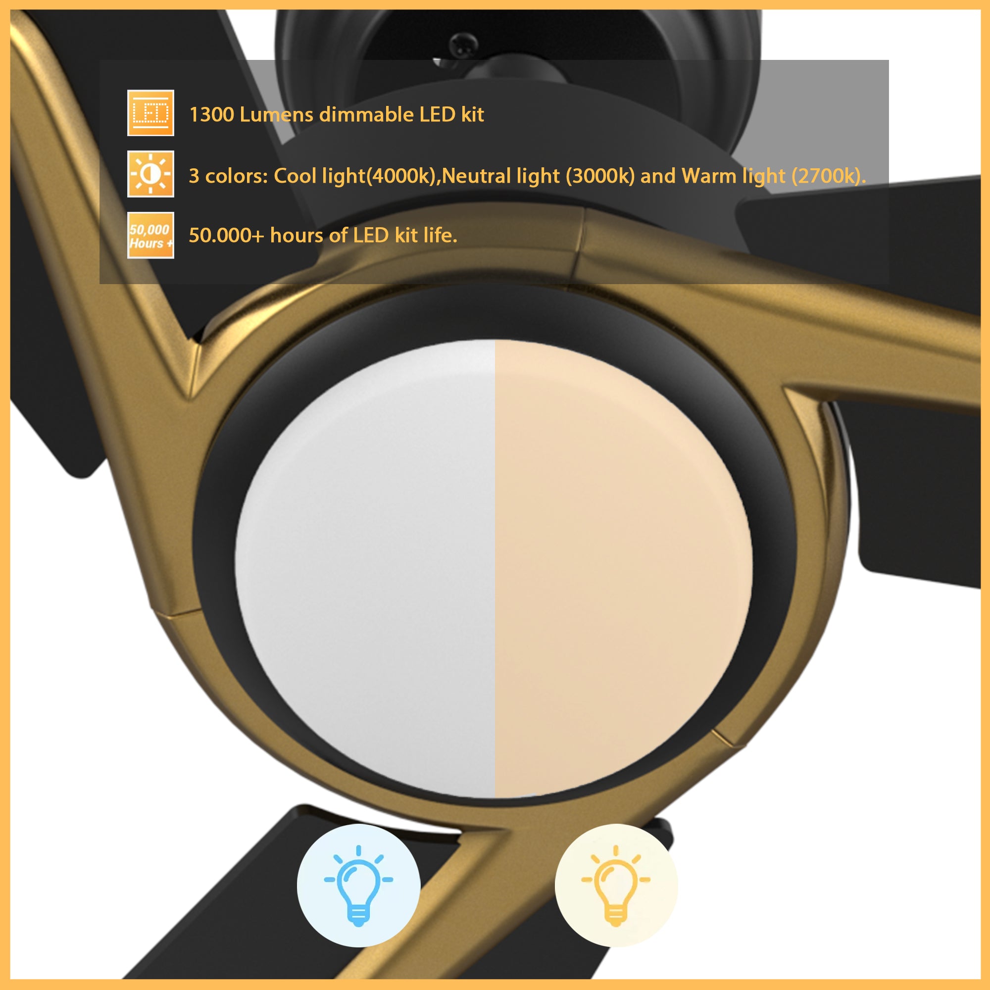 - Includes integrated LED light kit with warm light and cool light, it offers lower energy consumption and a longer life span