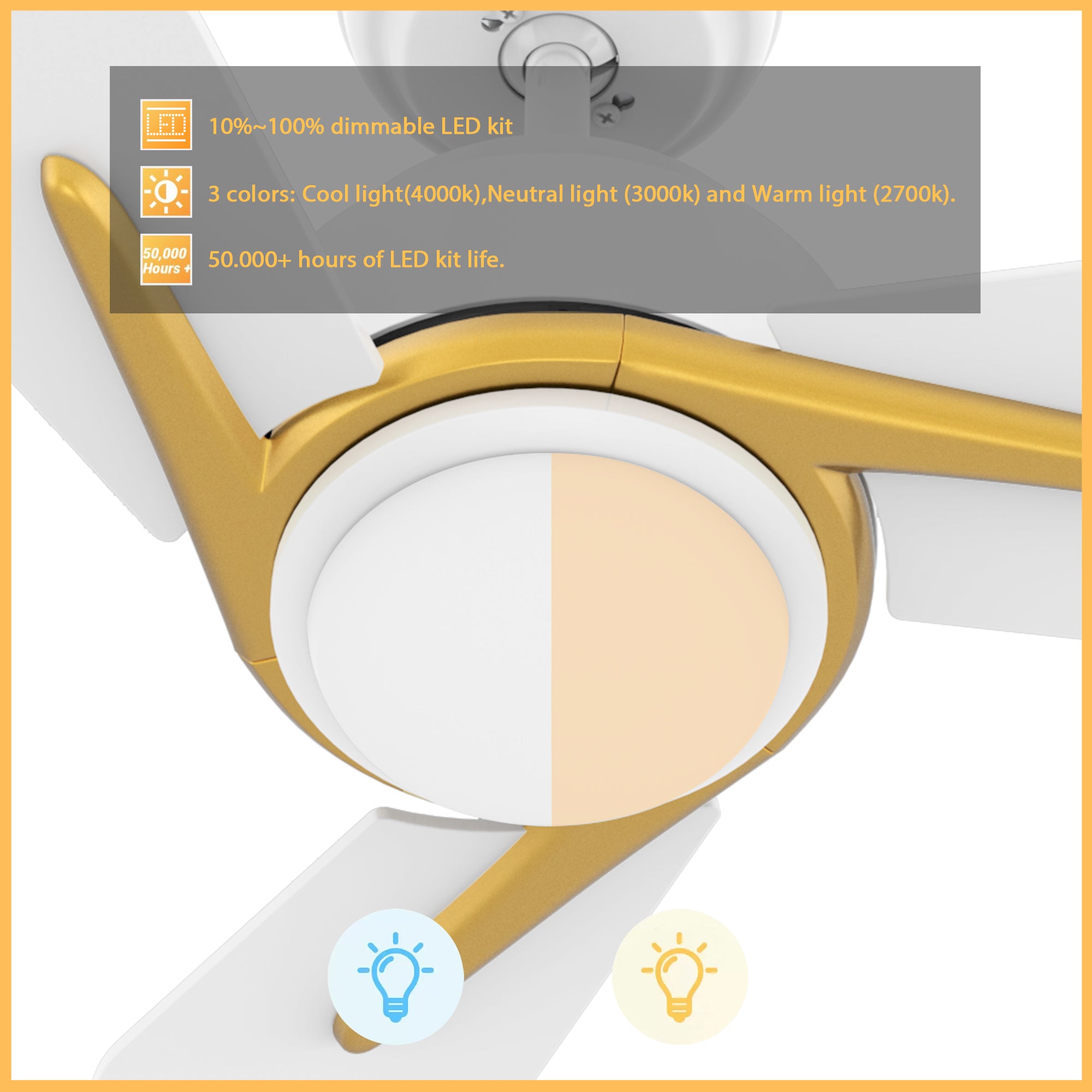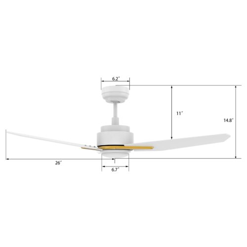 This Tracer 52” smart ceiling fan keeps your space cool, bright, and stylish. It is a soft modern masterpiece perfect for your large indoor living spaces. This Wifi smart ceiling fan is a simplicity designing with White finish, use elegant Plywood blades and has an integrated 4000K LED cool light. The fan features Remote control, Wi-Fi apps, Siri Shortcut and Voice control technology (compatible with Amazon Alexa and Google Home Assistant ) to set fan preferences.