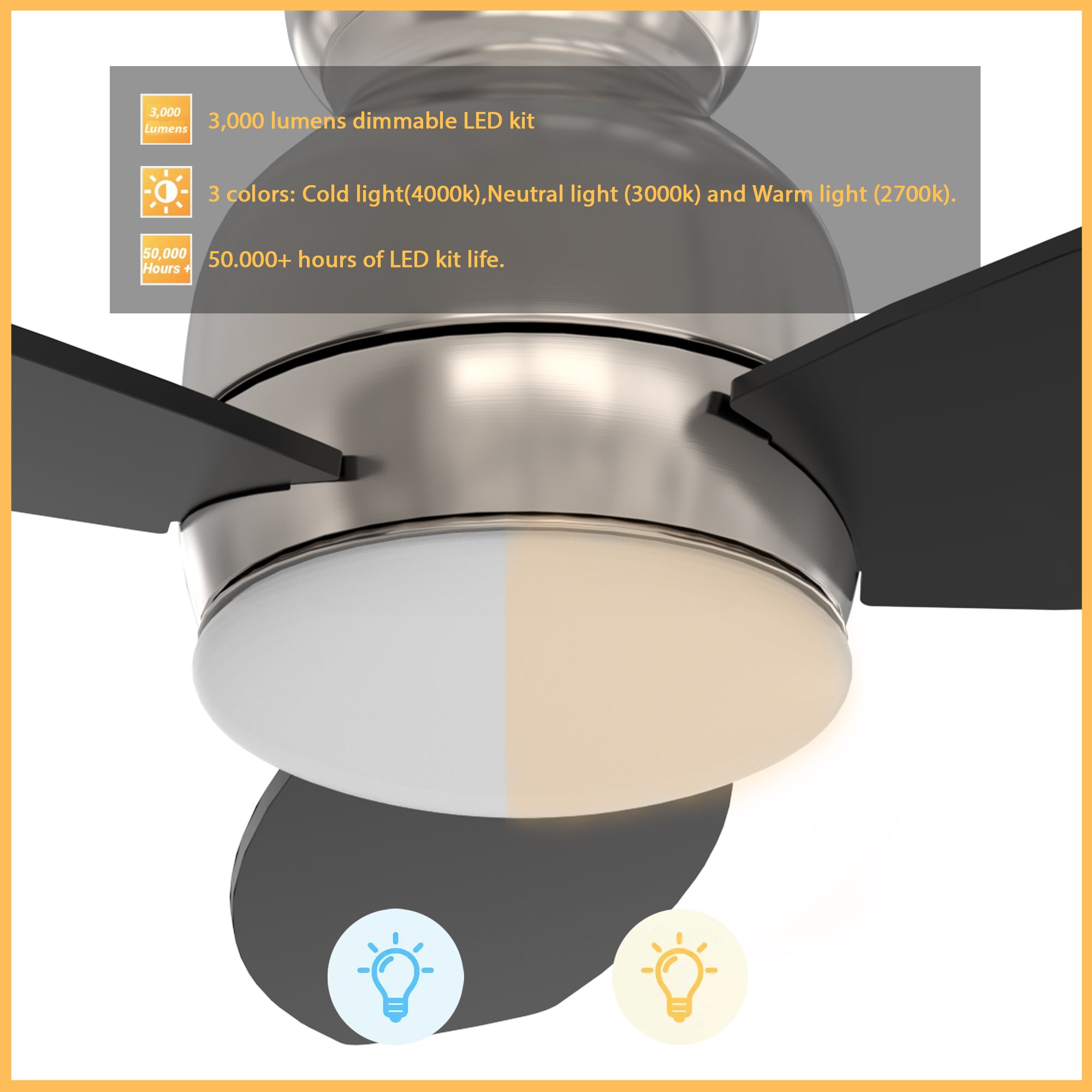 - Includes integrated LED light kit with warm light and cool light, it offers lower energy consumption and a longer life span