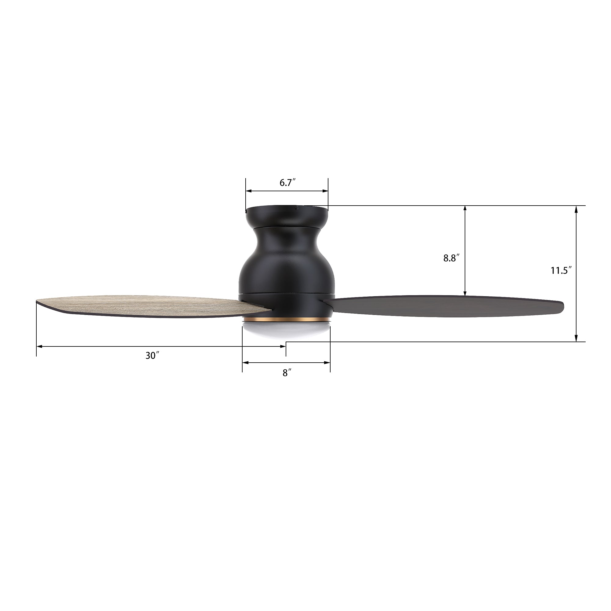 The Trento Smart Ceiling Fan with 3 blades and a 60-inch blade sweep with a flush mounted motor case and tropical inspired blades. The wide paddle shaped fan blades are elegant Plywood blades. The motor case is a Black finish and one of our few flush mounted DC motor fans. A dimmable 4000K LED lighting kit that can change between bright white, soft warm light, and a combination of both for a neutral temperature. The fan features Remote control, Wi-Fi apps, Siri Shortcuts, and Voice control technology (compatible with Amazon Alexa and Google Home Assistant ) to set fan preferences.