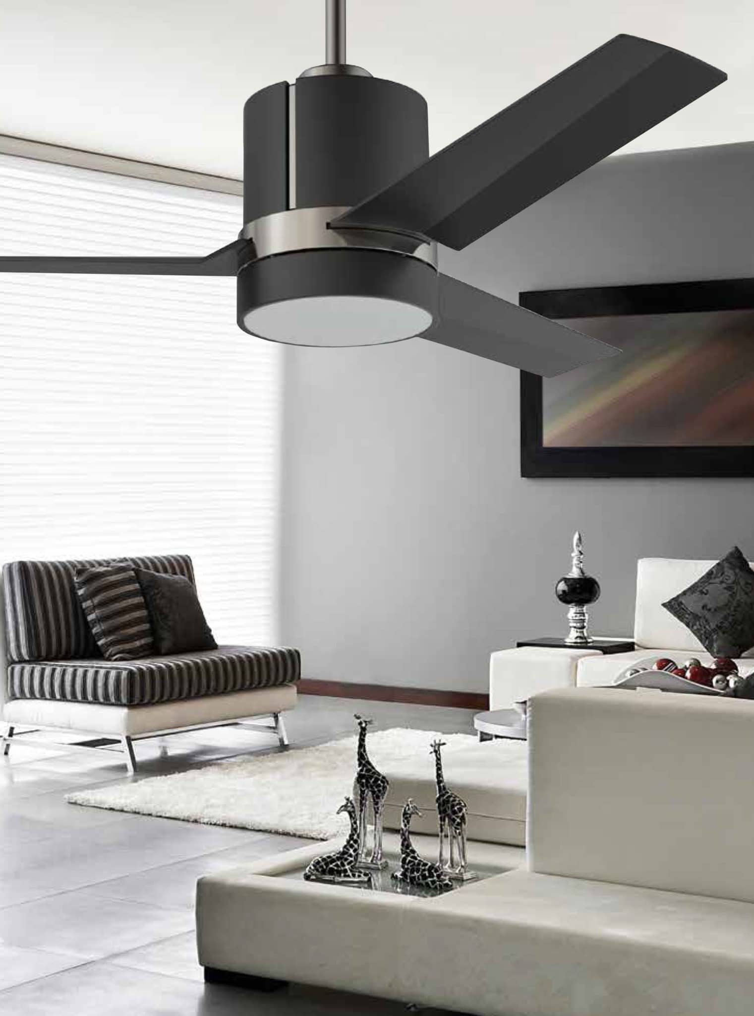 TRINITY 44 in. Ceiling Fan with LED Light Kit in a Black & Satin Nickel finish with Black blades