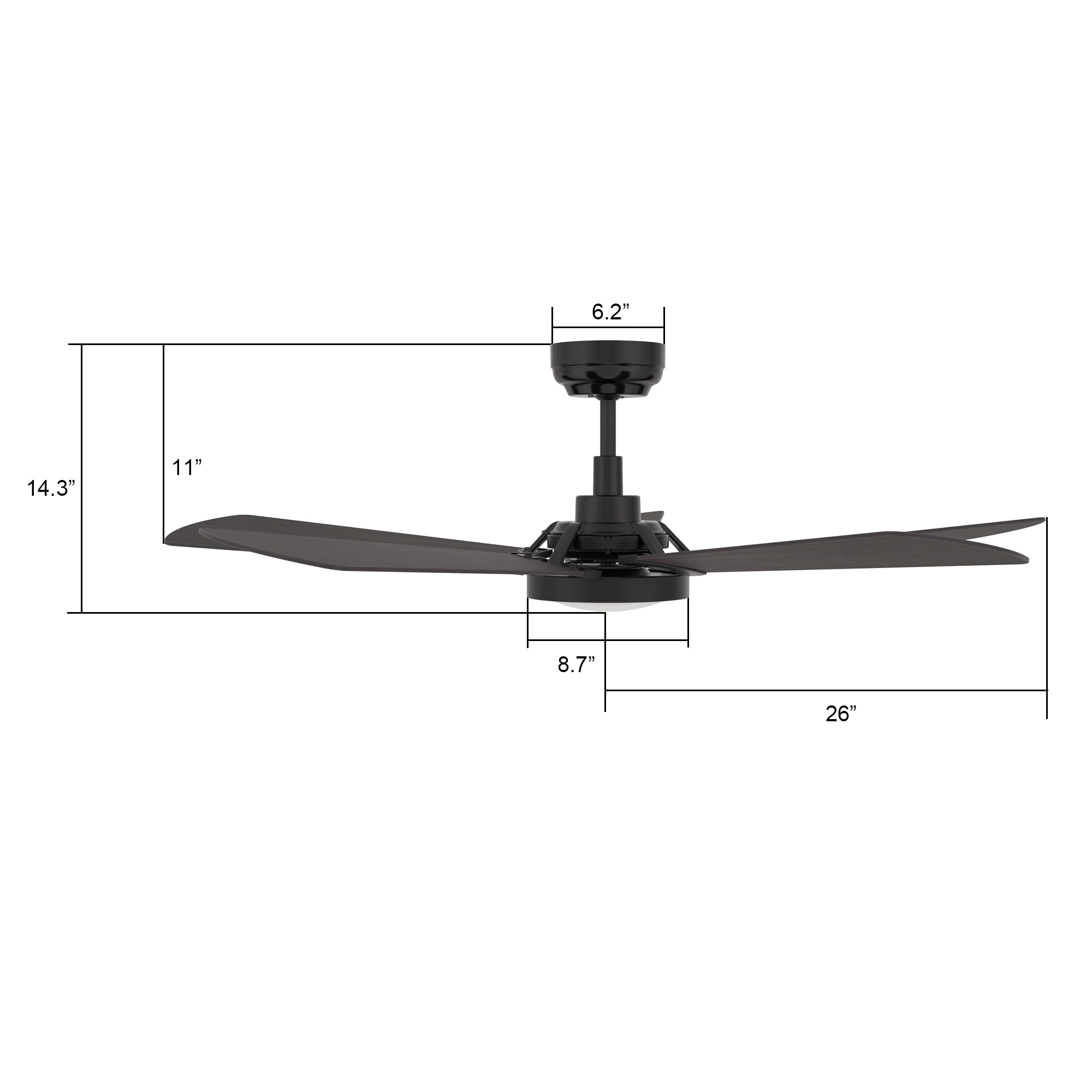 This Winston 52” smart ceiling fan keeps your space cool, bright, and stylish. It is a soft modern masterpiece perfect for your large indoor living spaces. This Wi-Fi smart ceiling fan is a simplicity designing with Black finish, use elegant Plywood blades, Glass shade and has an integrated 4000K LED cool light. The fan features Remote control, Wi-Fi apps, Siri Shortcuts and Voice control technology (compatible with Amazon Alexa and Google Home Assistant ) to set fan preferences.