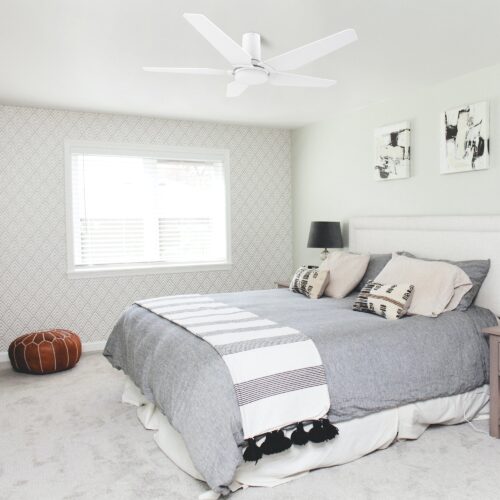 This Woodrow 48” smart ceiling fan keeps your space cool, bright, and stylish. It is a soft modern masterpiece perfect for your large indoor living spaces. This Wi-Fi smart ceiling fan is a simplicity designing with White finish, use elegant Plywood blades, Glass shade and has an integrated 4000K LED cool light. The fan features Remote control, Wi-Fi apps, Siri Shortcuts and Voice control technology (compatible with Amazon Alexa and Google Home Assistant ) to set fan preferences.