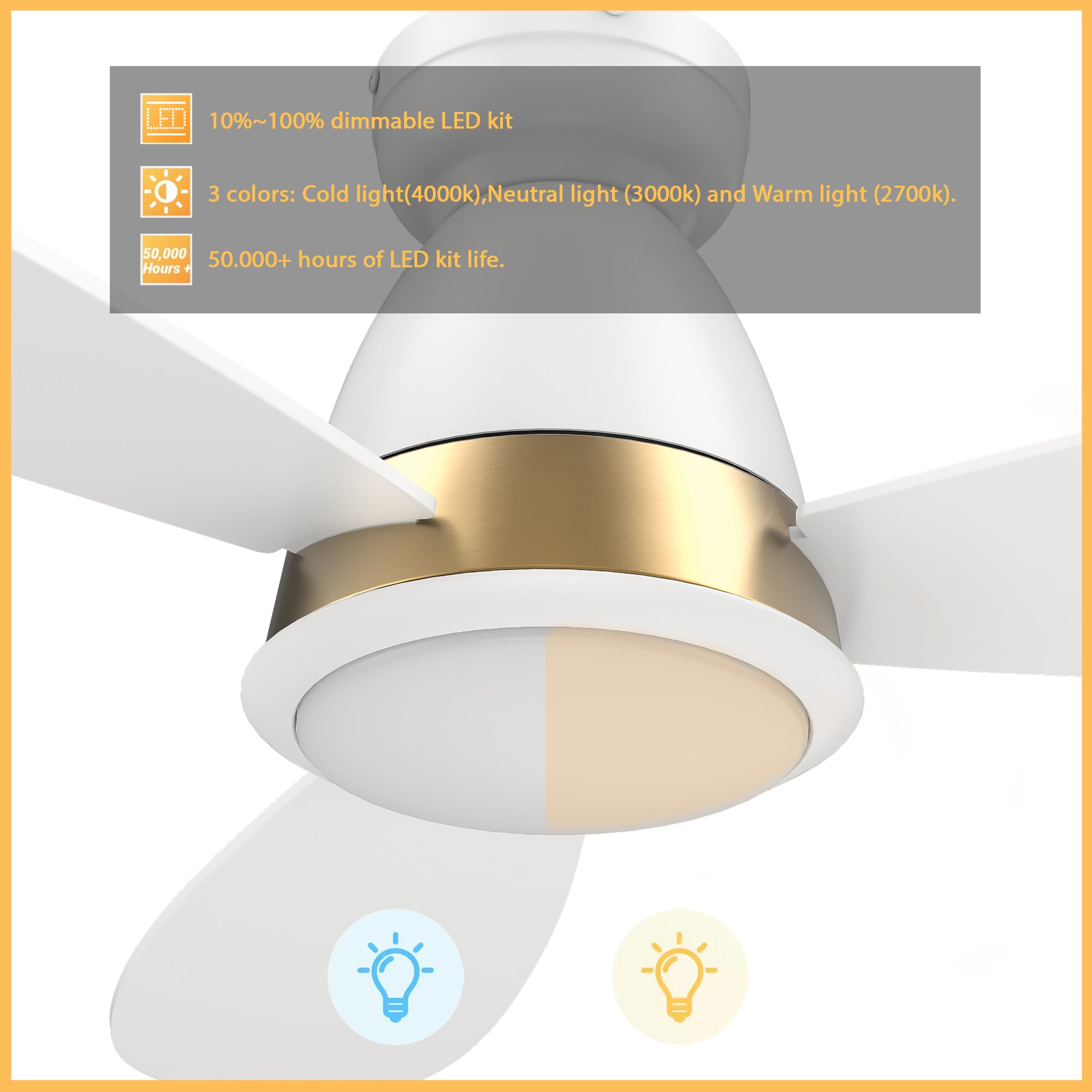 - Includes integrated LED light kit with warm light and cool light,it offers lower energy consumption and a longer life span