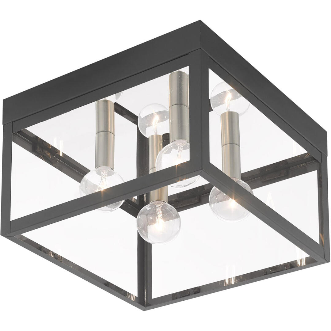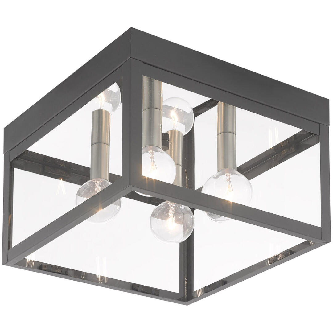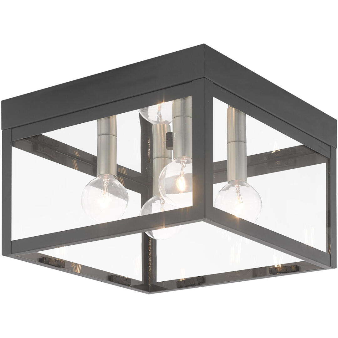 The dramatically simple shape and bold lines help define our Nyack ceiling mount. Featured in a Scandinavian gray finish with panels of clear glass.