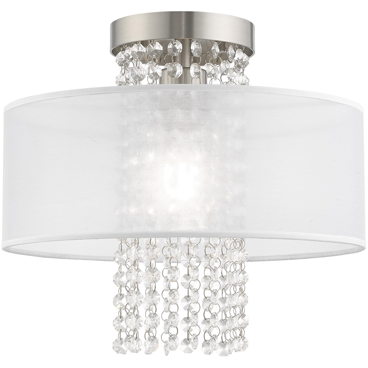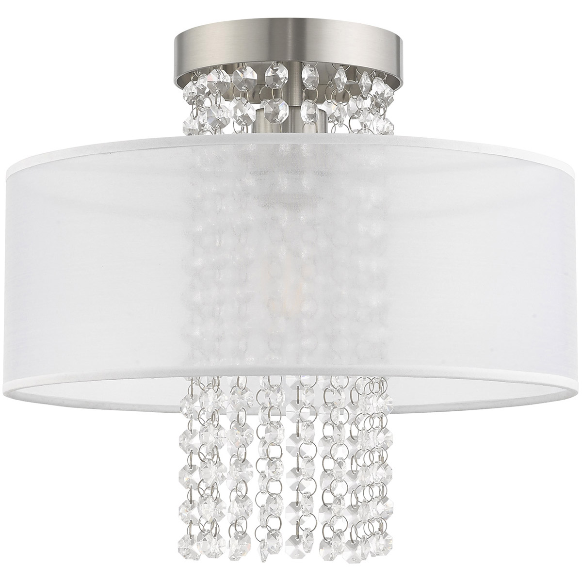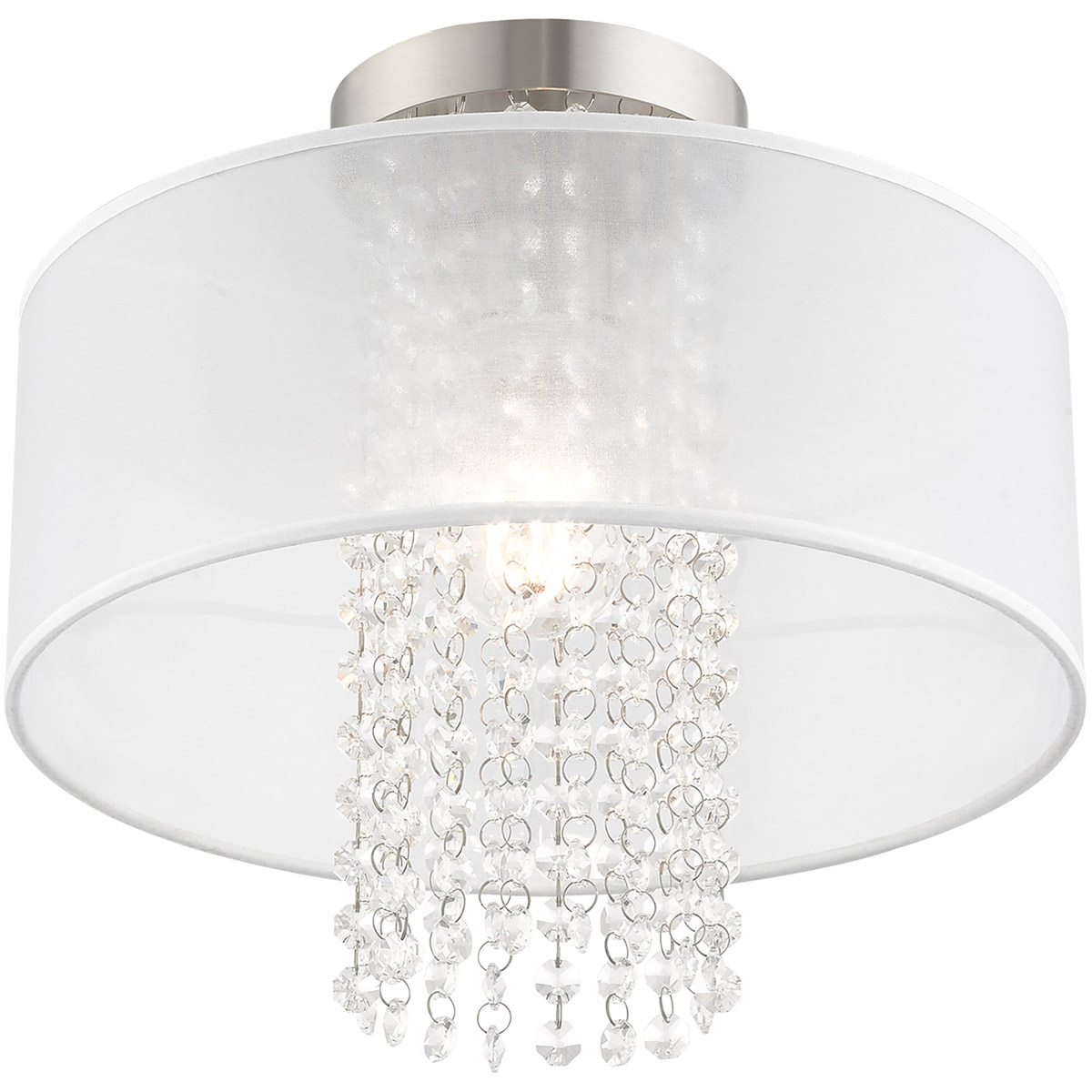 | Glass/Shade Type: Clear Crystals/ Hand Crafted Translucent Fabric Shade | Diameter: 13 Inch |