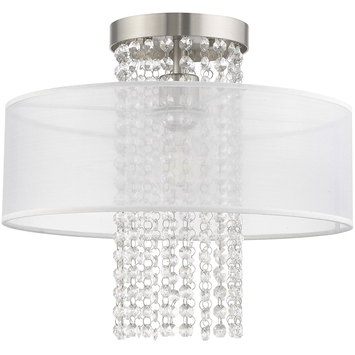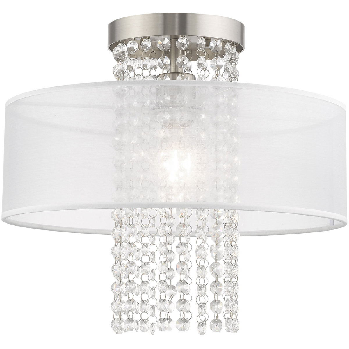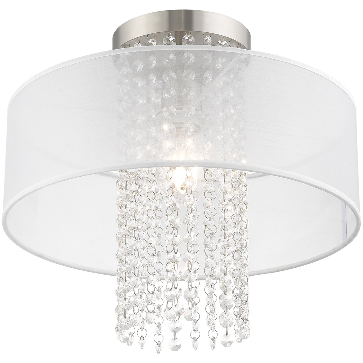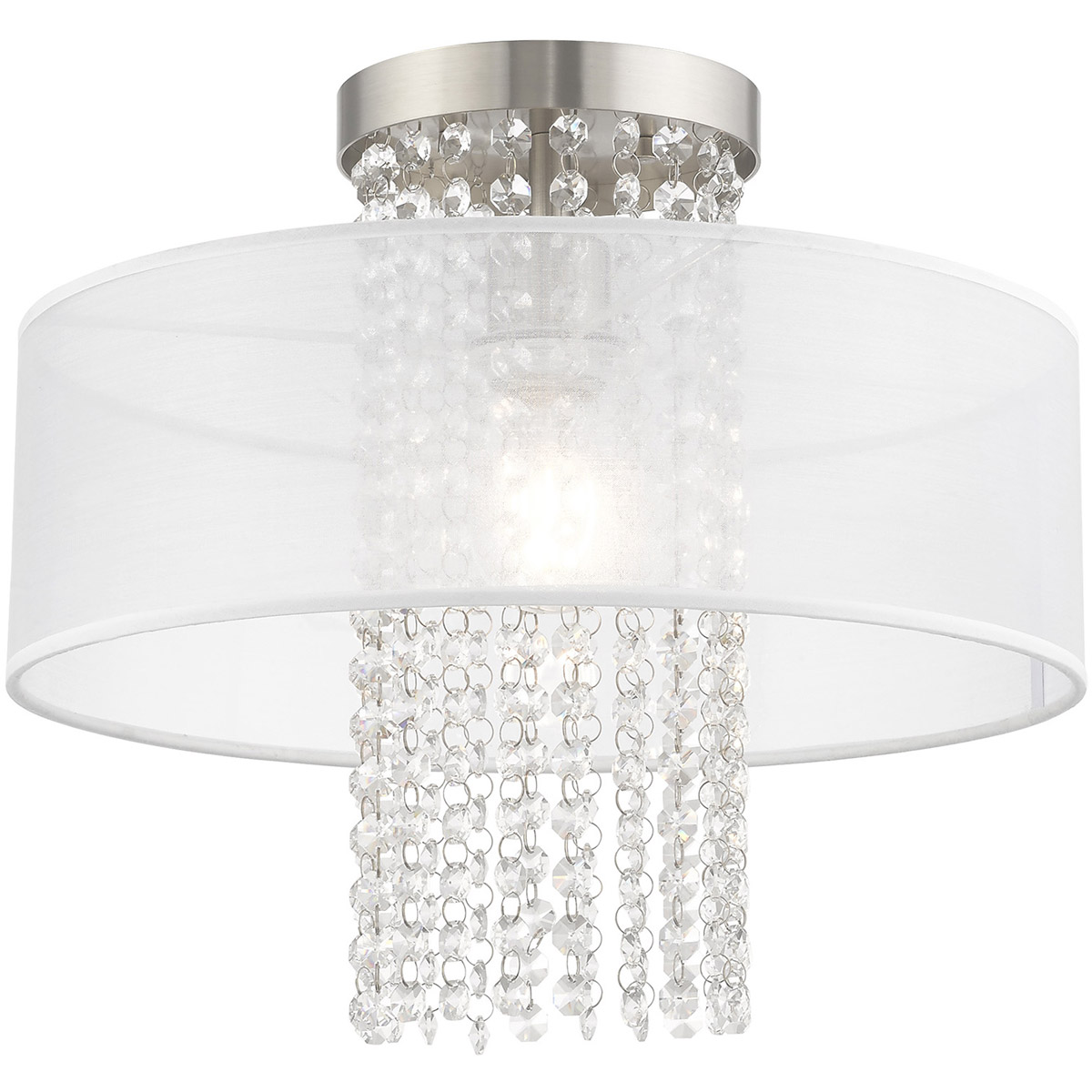 | Glass/Shade Type: Clear Crystals/ Hand Crafted Translucent Fabric Shade | Diameter: 15 Inch |