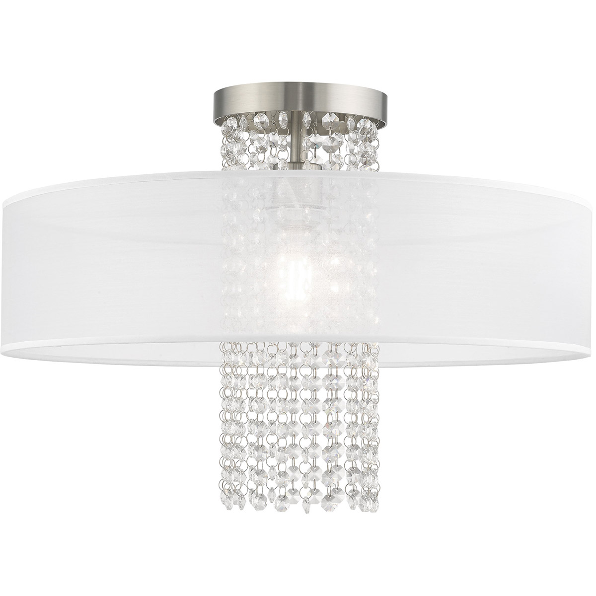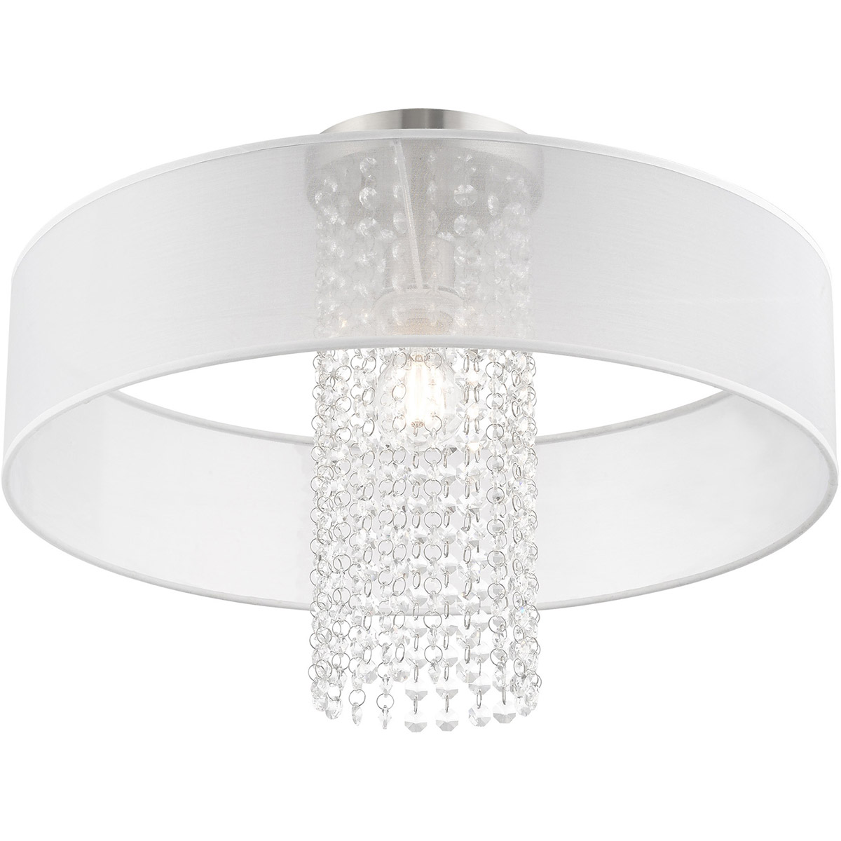 | Glass/Shade Type: Clear Crystals/ Hand Crafted Translucent Fabric Shade | Diameter: 20 Inch |