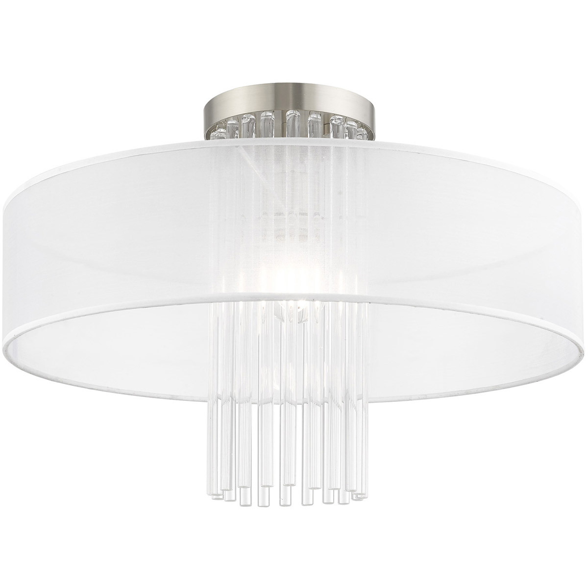 1 Light Brushed Nickel Ceiling Light fixture with Clear Crystal Rods/ Hand Crafted Translucent Fabric Shade-Lighting Lumens