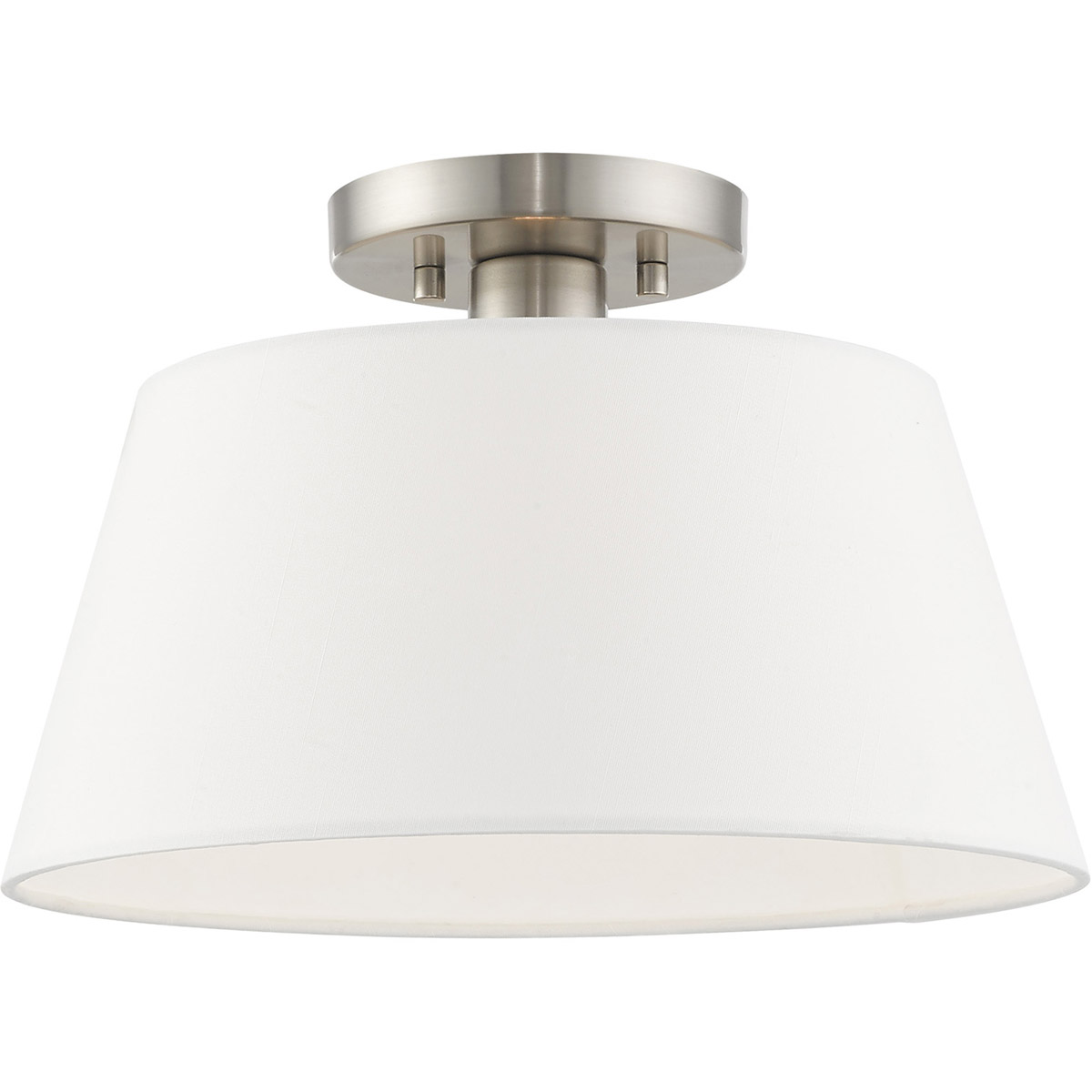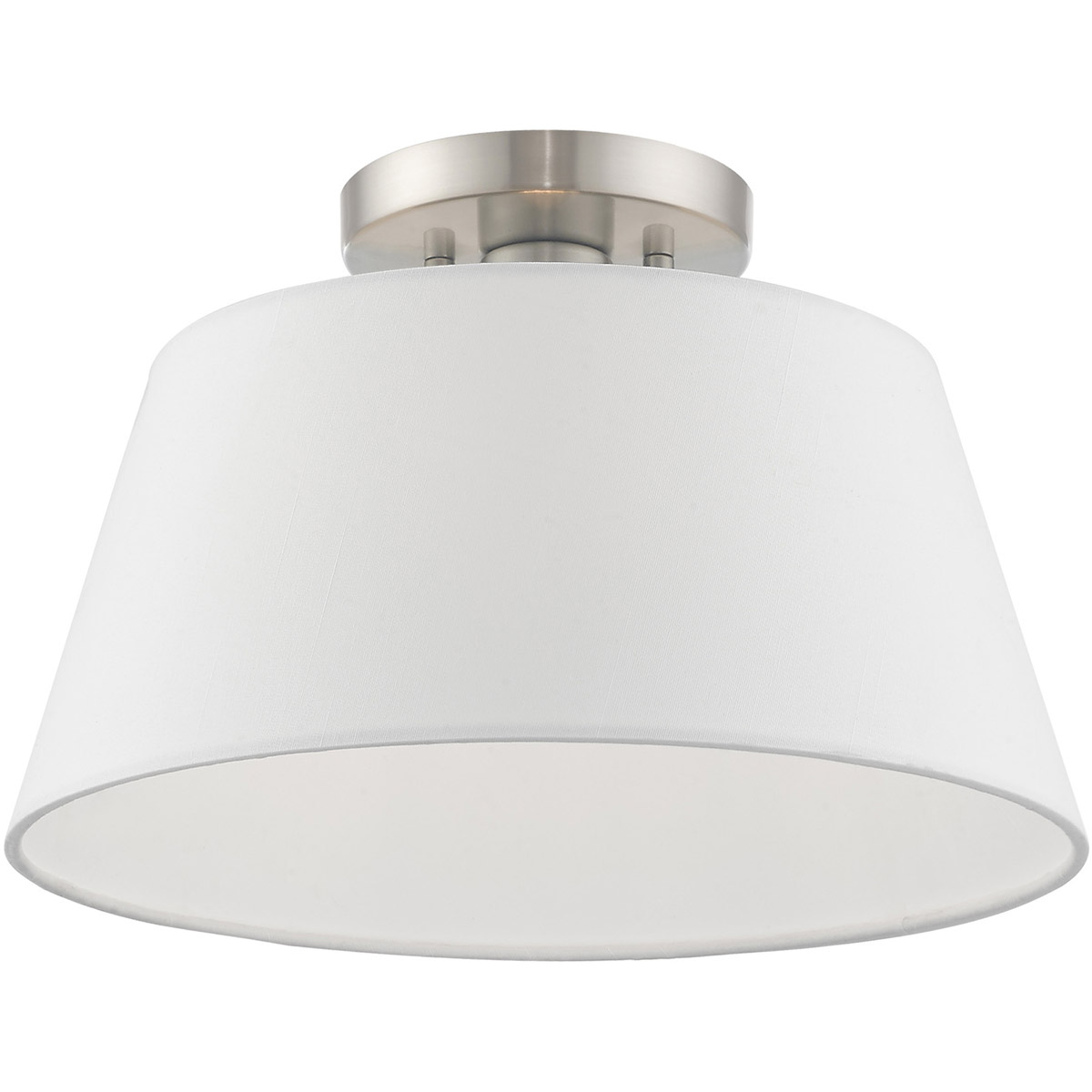 1 Light Brushed Nickel Ceiling Light fixture with Hand Crafted Off-White Fabric Hardback Shade-Lighting Lumens
